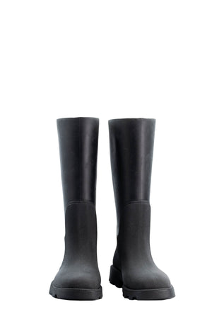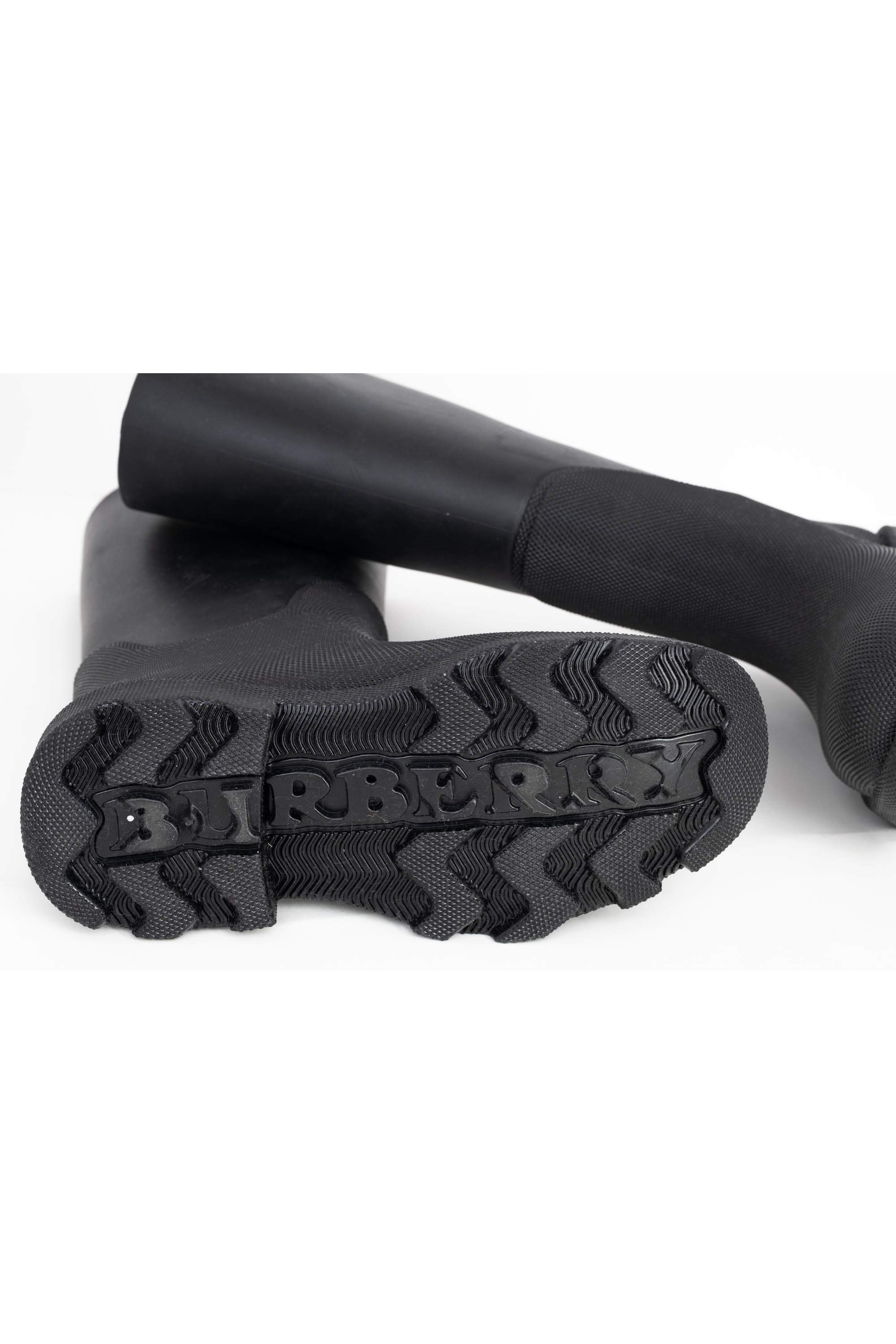 Burberry Black Rubber Rain Boots With Purple Nova Lining Size 38. Black rubber with textured surface. Pull-on silhouette with branded lug sole. Subtle purple nova check lining detail.