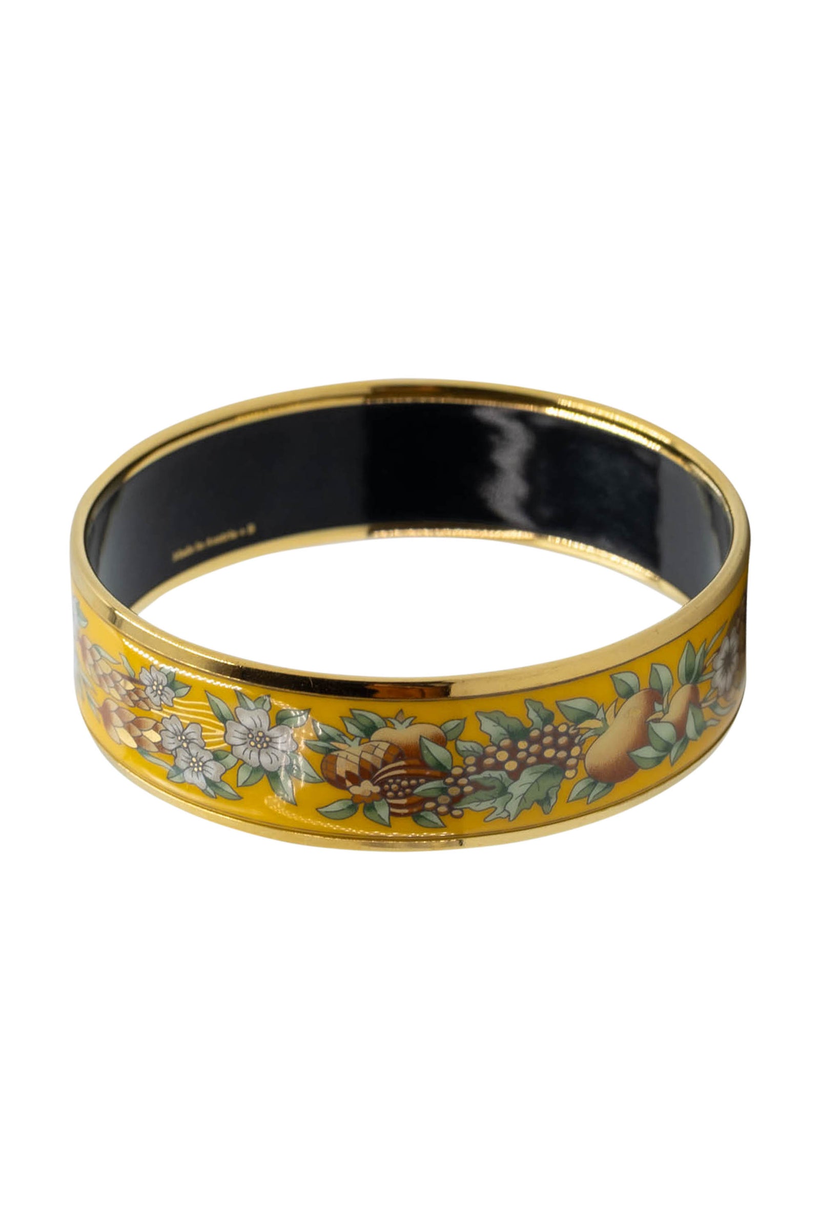 Hermes Vintage Yellow Wild Flower Enamel Bangle With Gold Trim