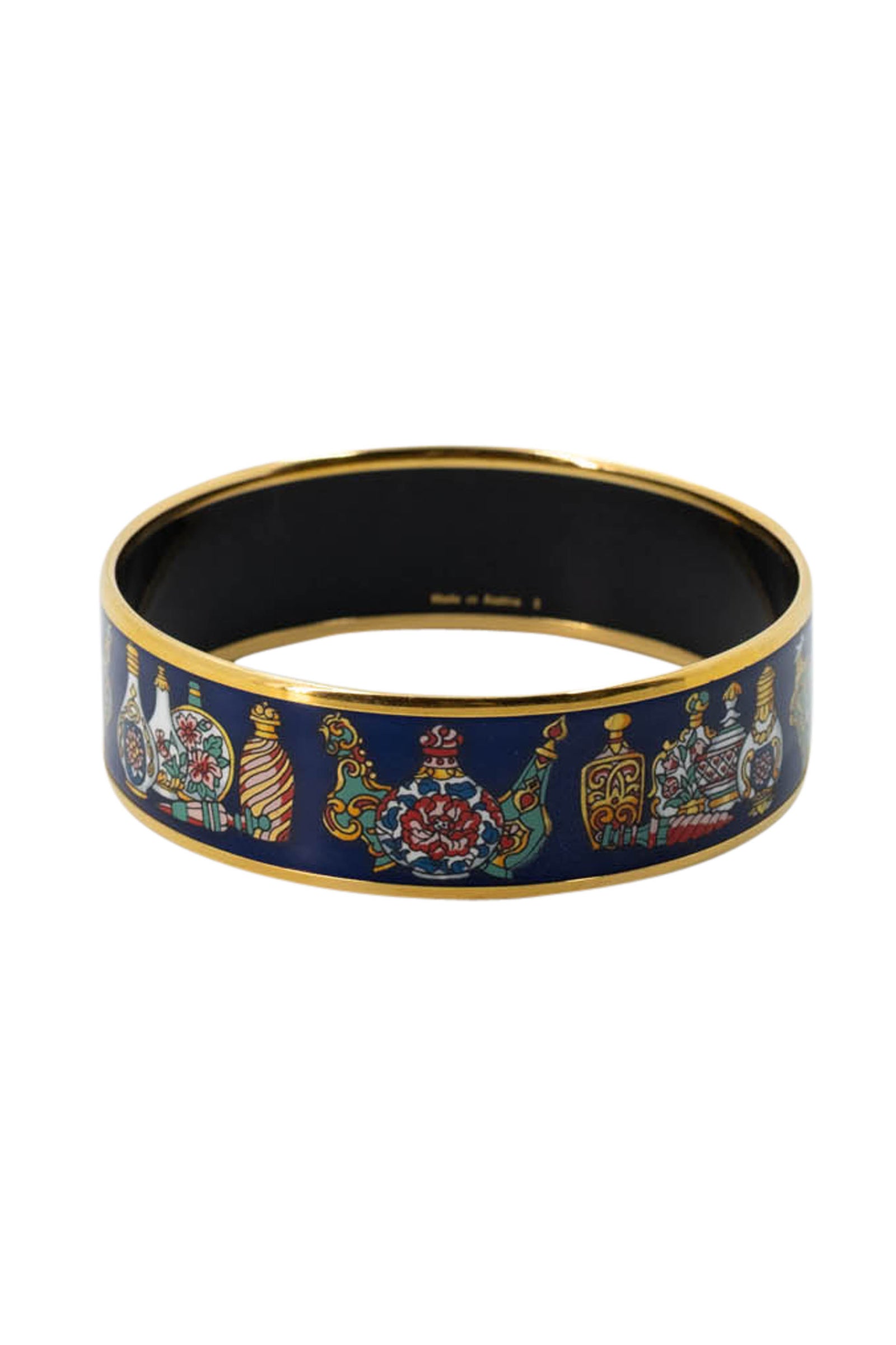 Hermes Vintage Navy Flacons Perfume Bottles Enamel Bangle With Gold Trim
