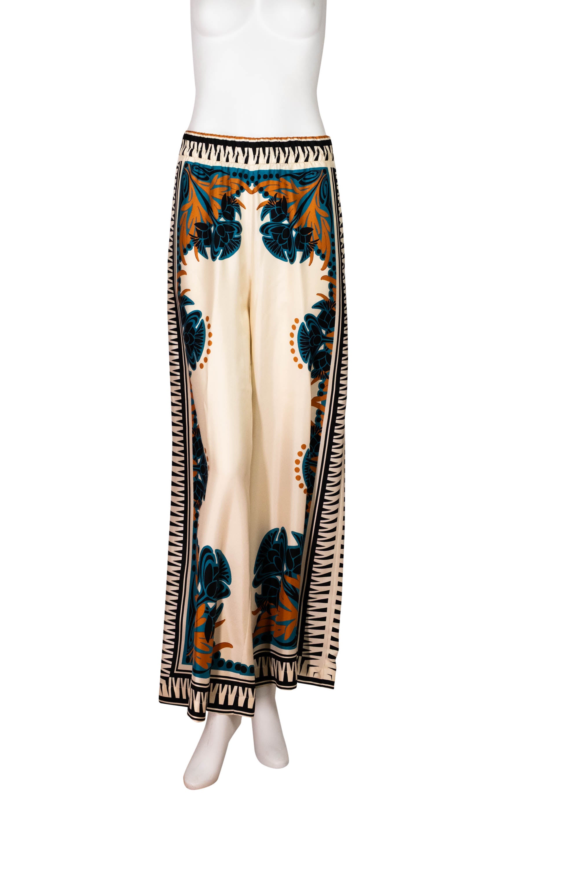 La Double J Ivory and Teal Printed Silk Palazzo Pants Size Small