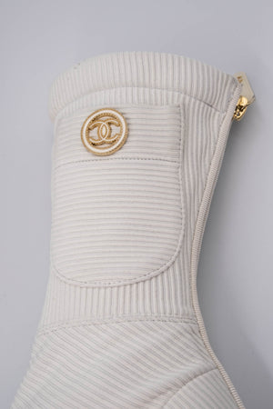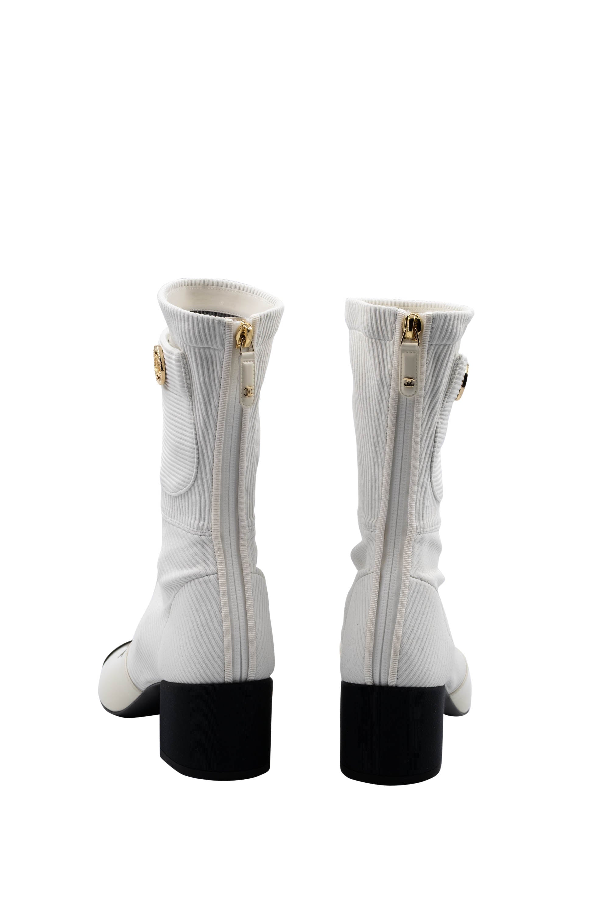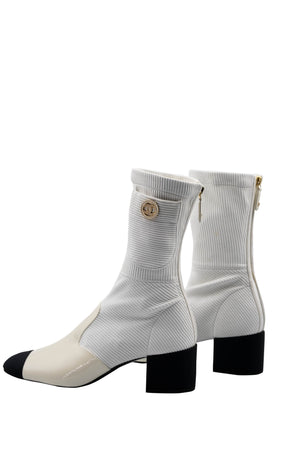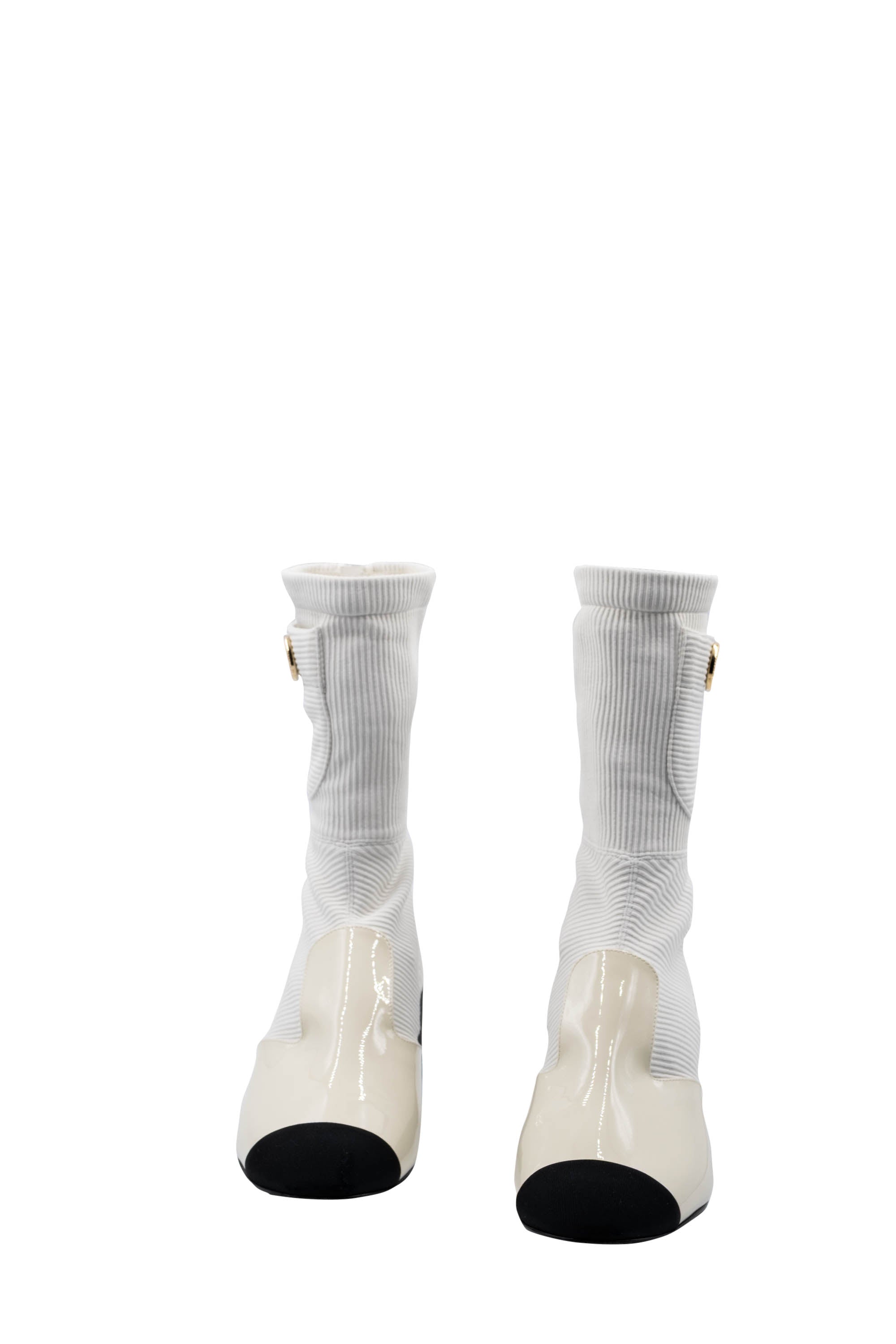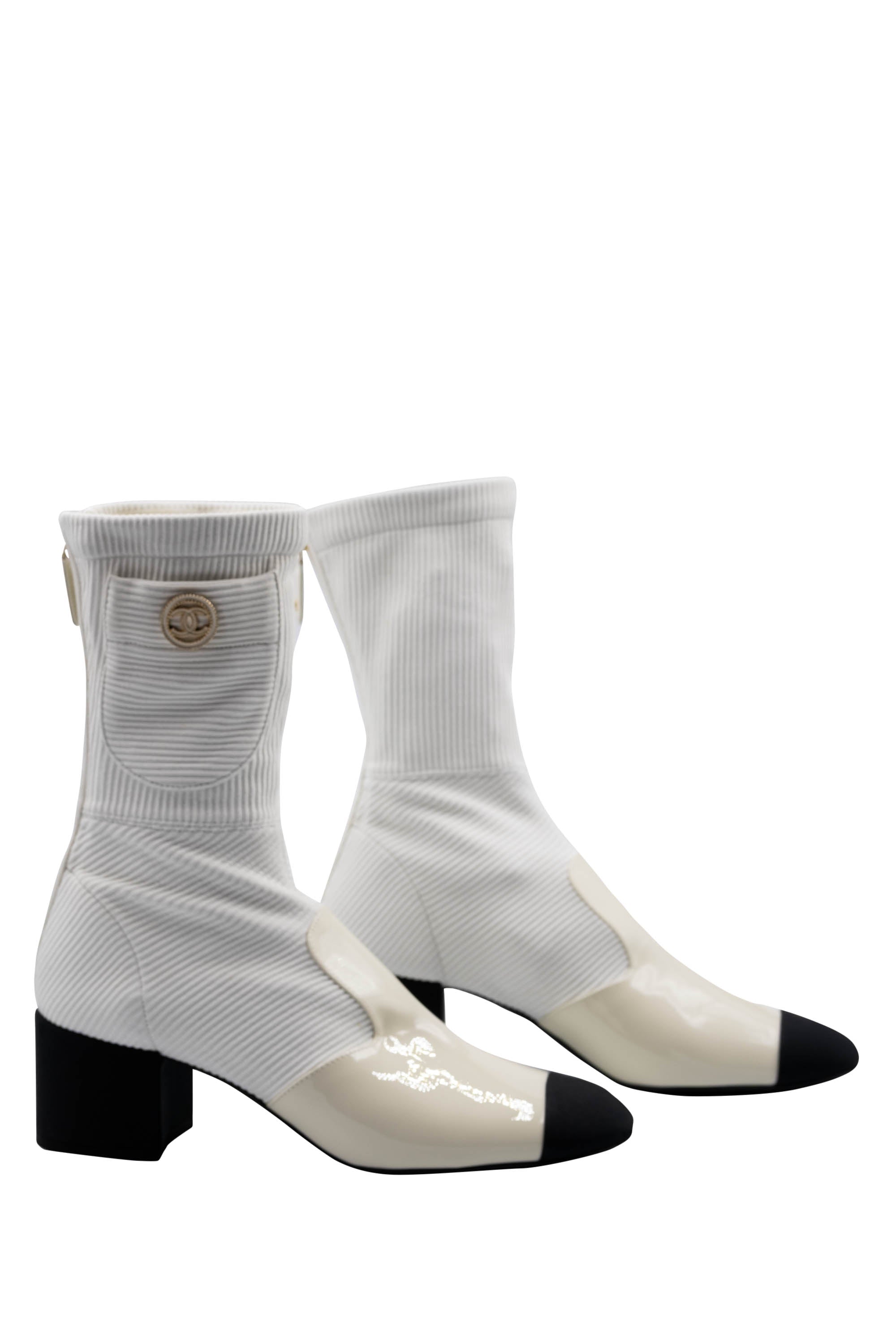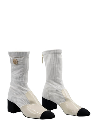 Chanel White Booties With Patent Leather Toe Size 7 21C.