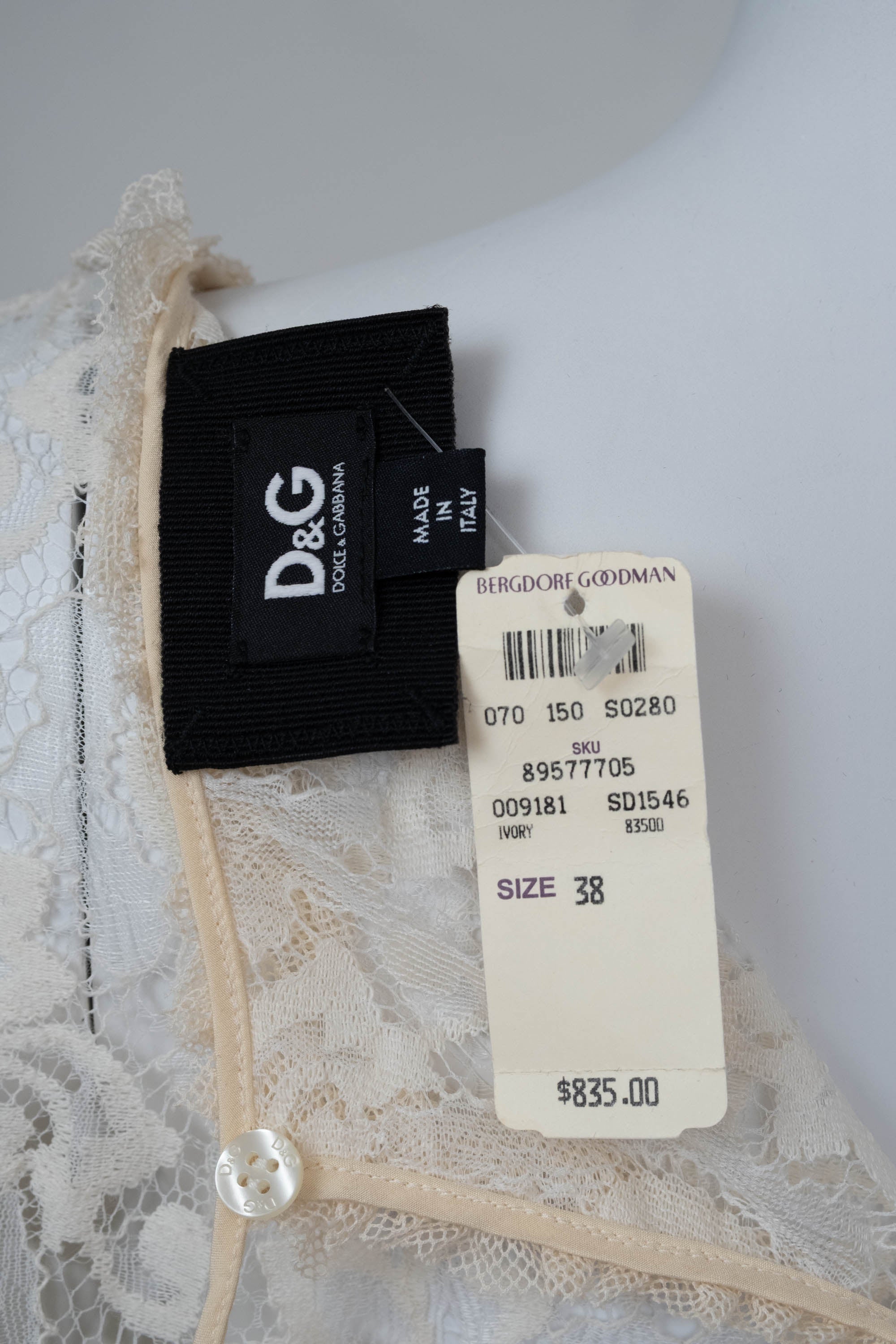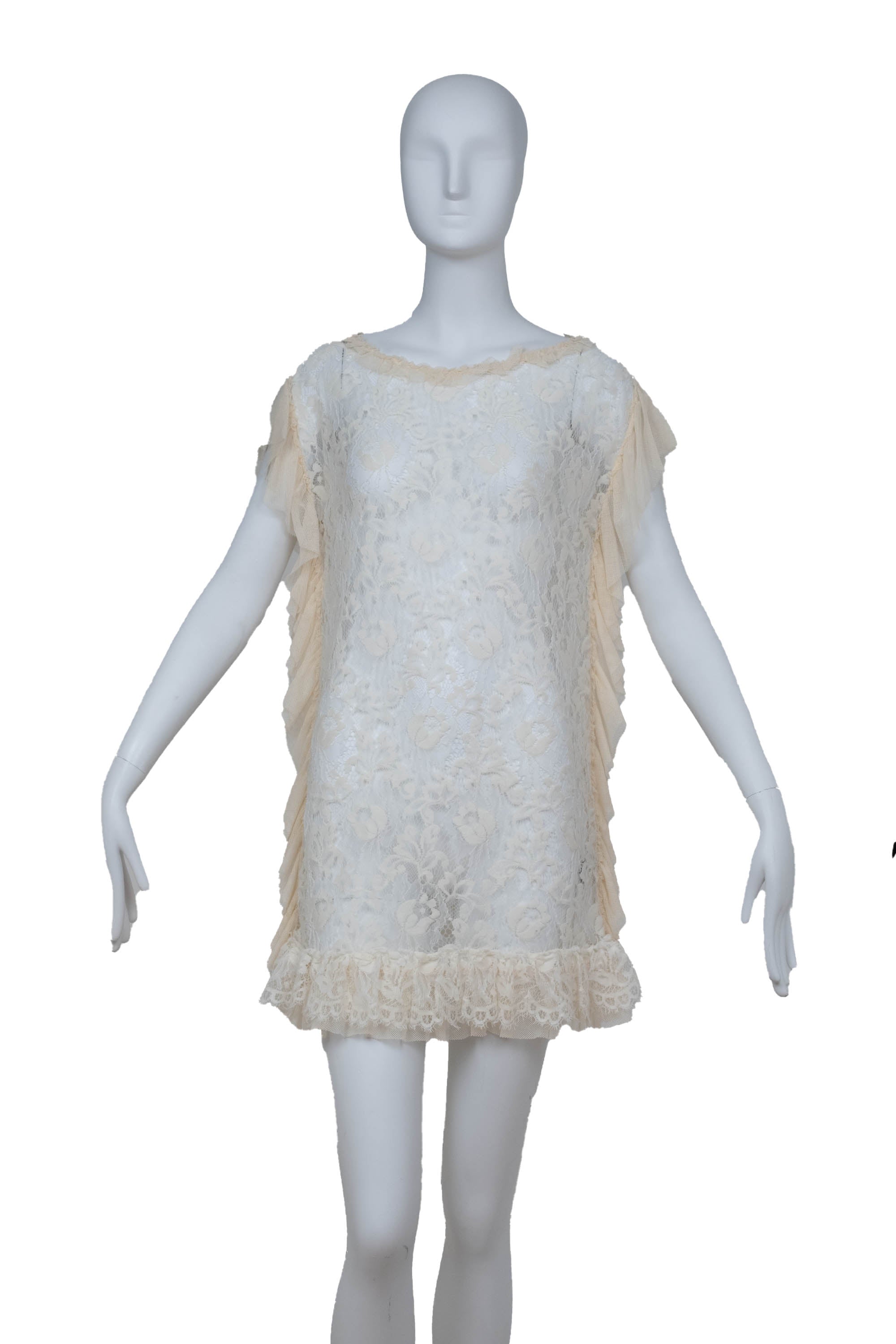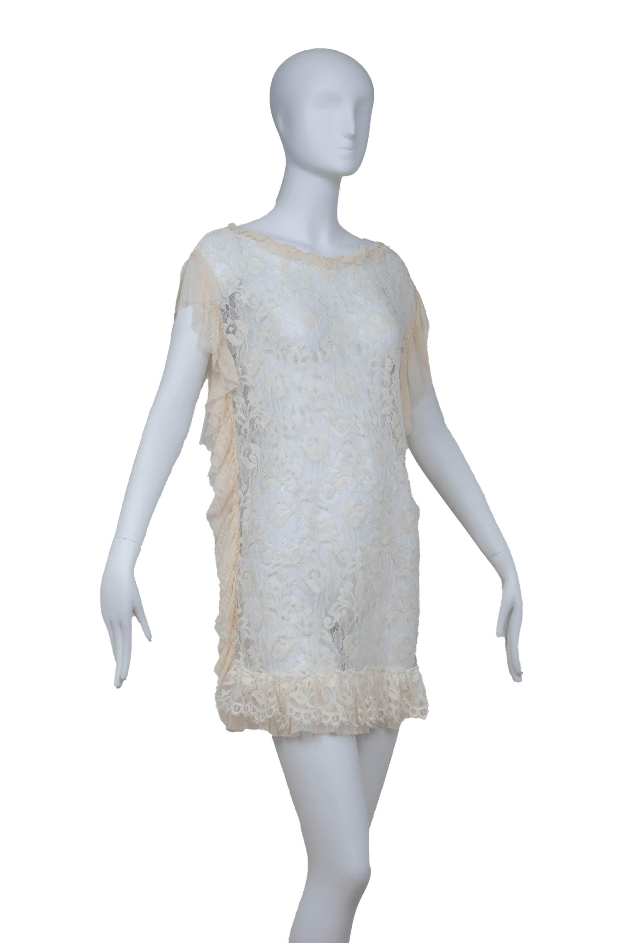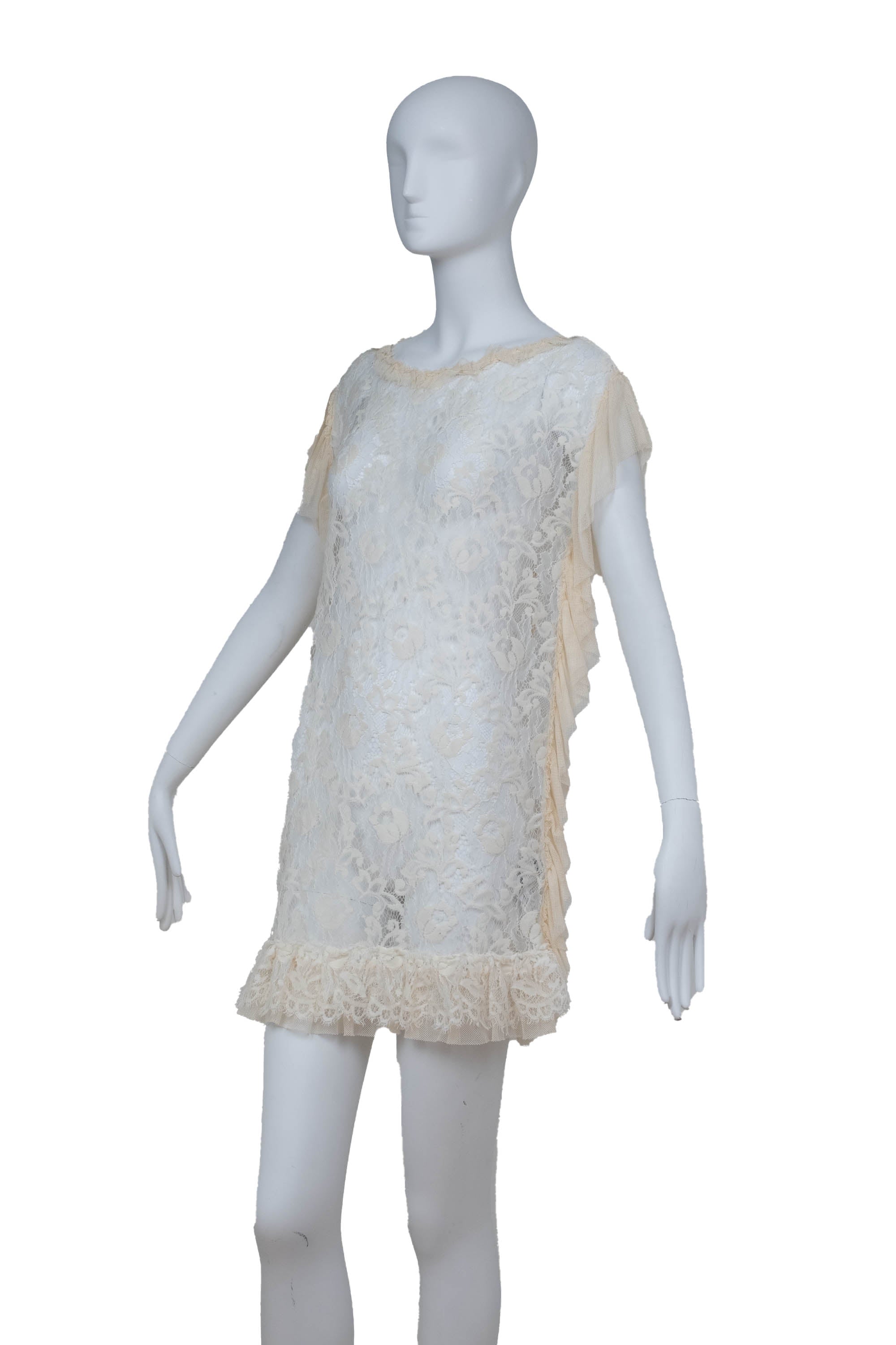 Dolce and Gabbana Cream Sheer Lace Mini Dress Size 38/2