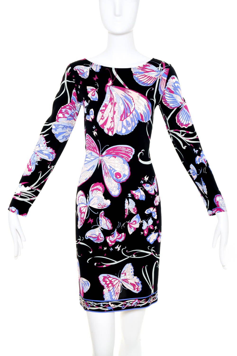 Emilio Pucci Black Butterfly Print Jersey Dress Size Small