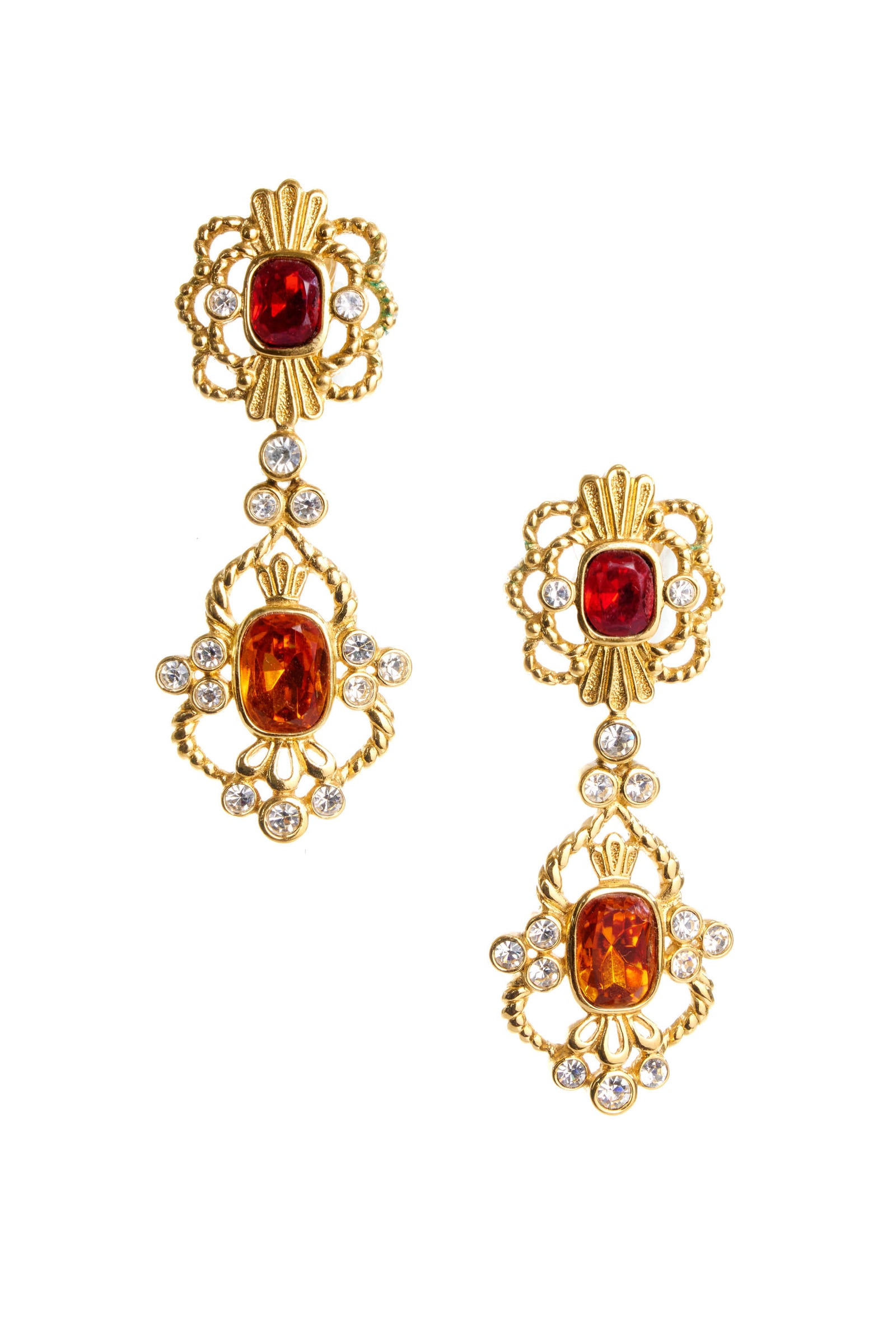 Dior Red and Orange Clip Drop Earrings Gold Hardware