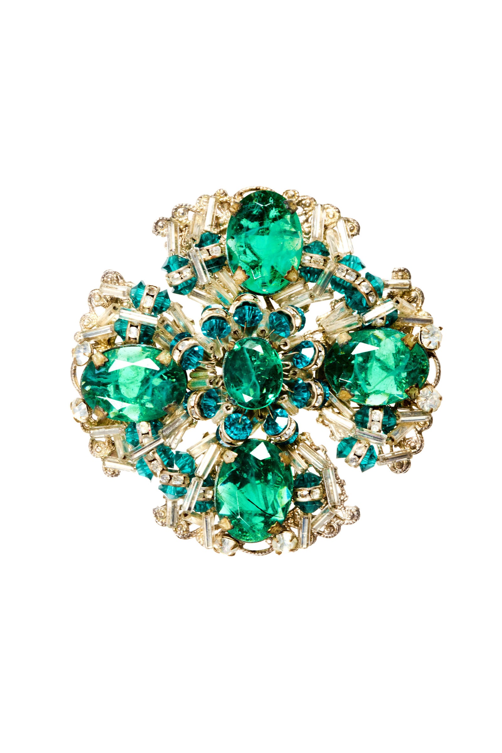Miriam Haskell Green & Clear Beads Crystal Brooch Flower Shape