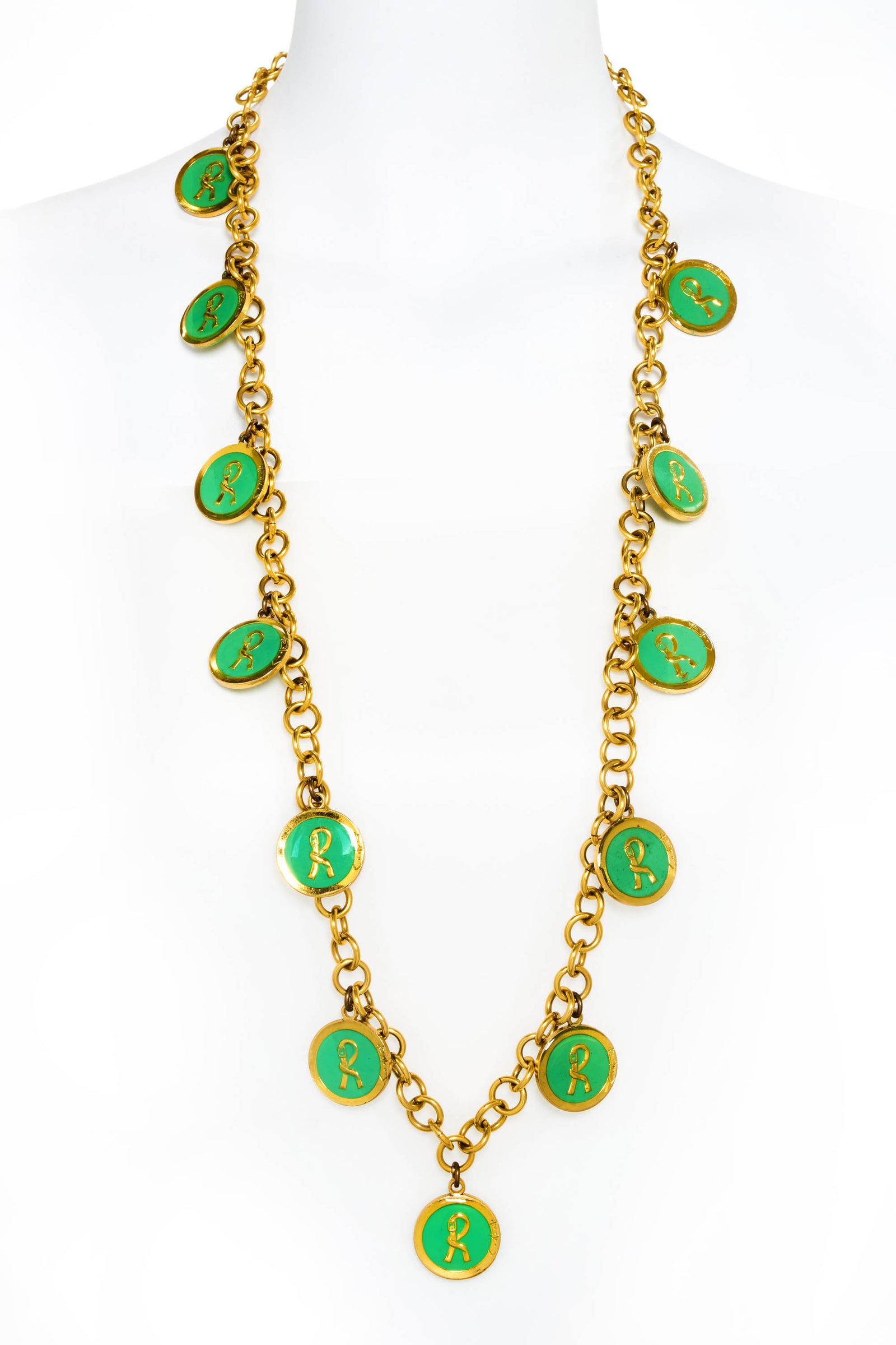 Roberta Di Camerino Gold and Green R Coin Necklace/Belt