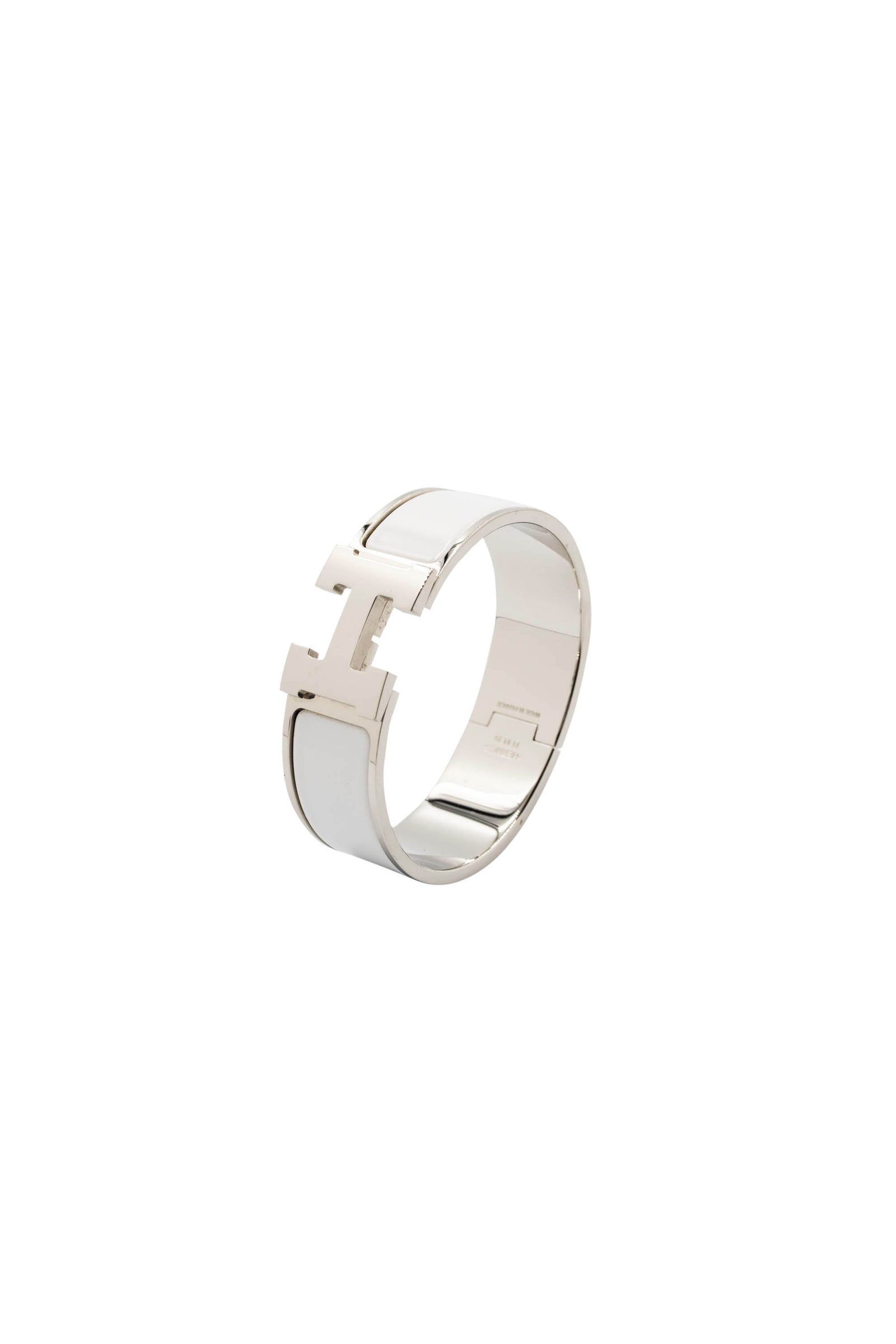 Hermes Clic Clac H Bangle 3/4" Silver and White Enamel