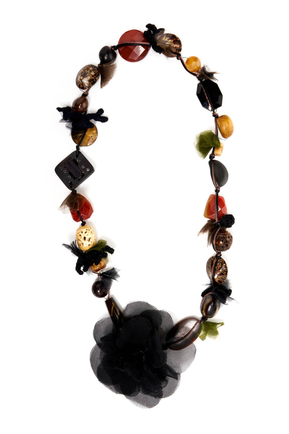 Oscar de la Renta Multi-Color Stone Shell Organza Flower Rope Necklace