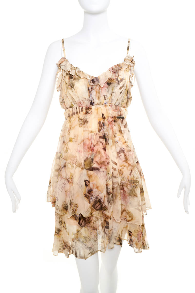 John Galliano Cream Dusty Rose Baby Doll Mini Dress Size 38/2