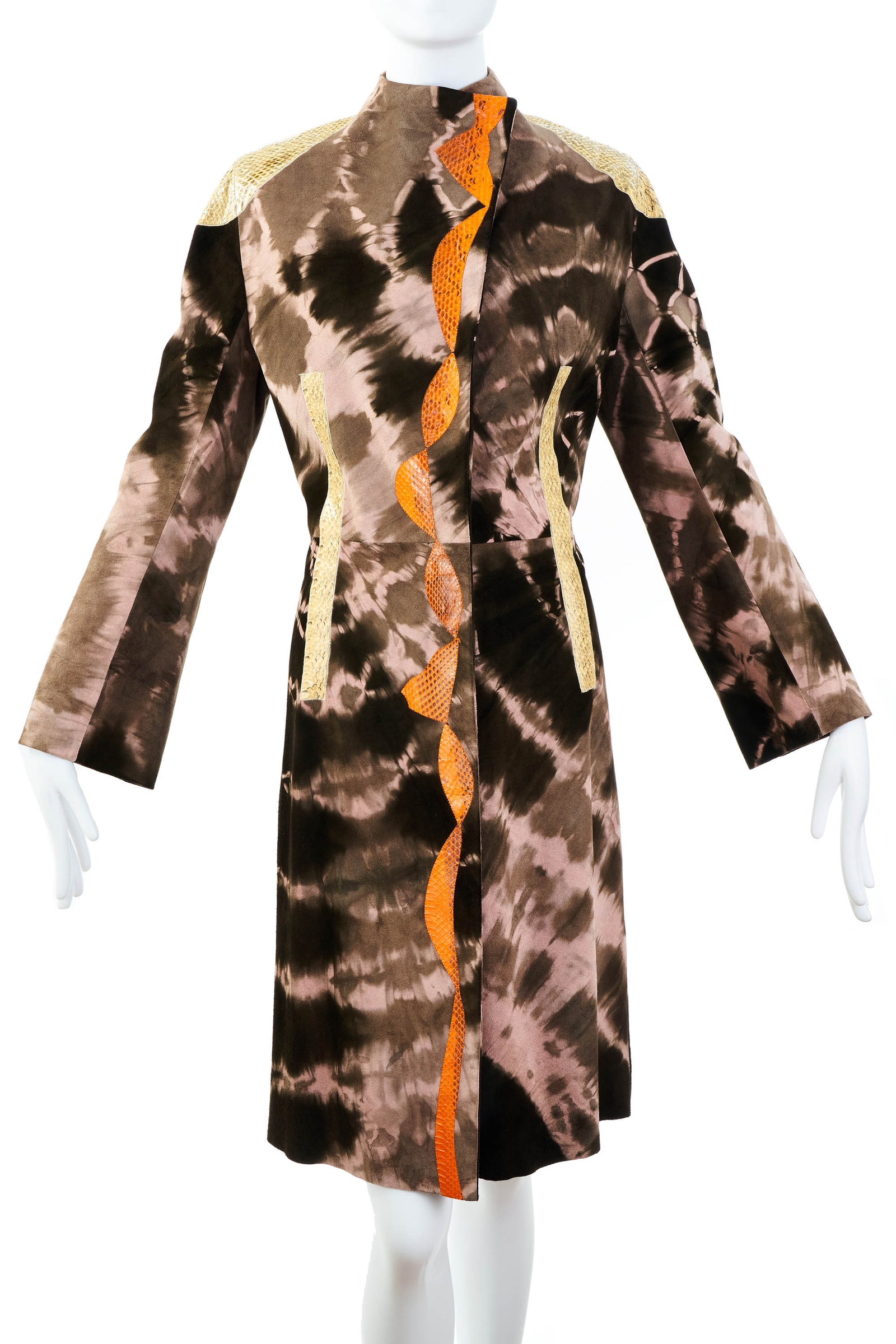Christian Lacroix Printed Suede Coat With Snake Skin Trim Size 44