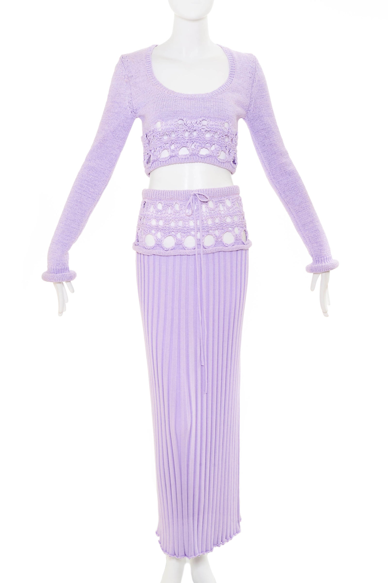 Christopher Esber Lavender Knit Crop Top and Skirt Set Size Large