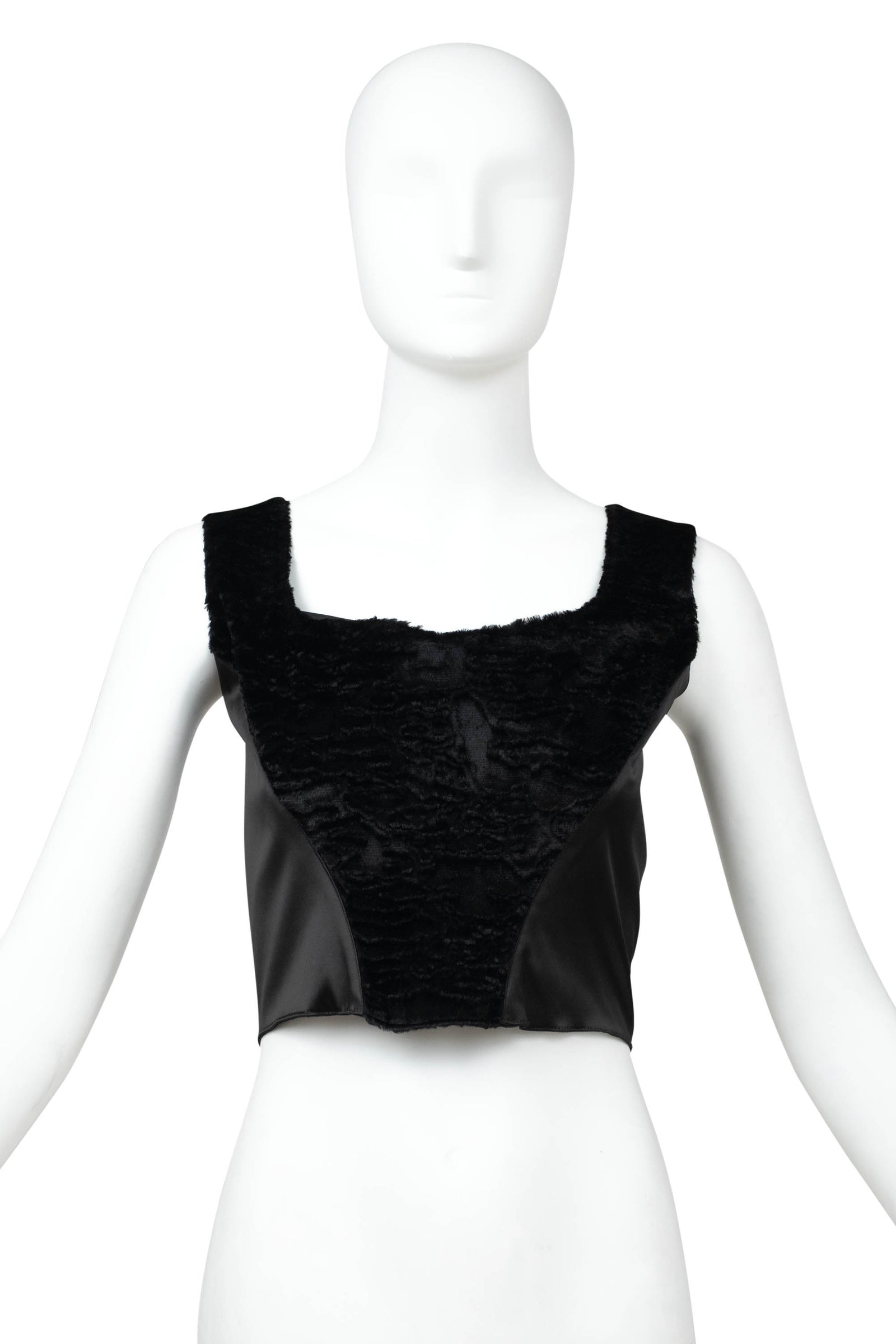 Blumarine Black Satin Faux Fur Bustier Size 42