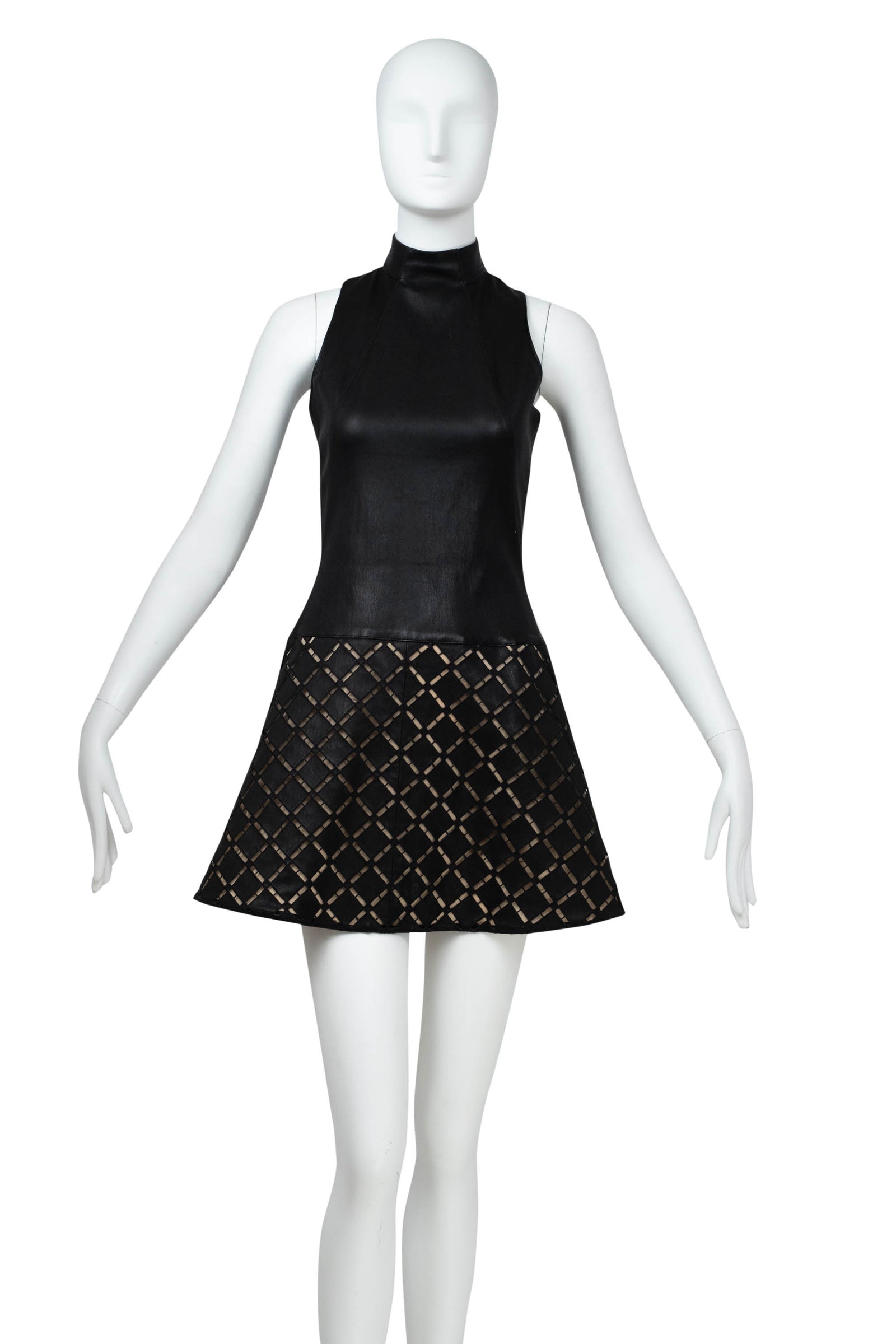 Jitrois Black French Mock Neck Stretch Leather Dress Size S