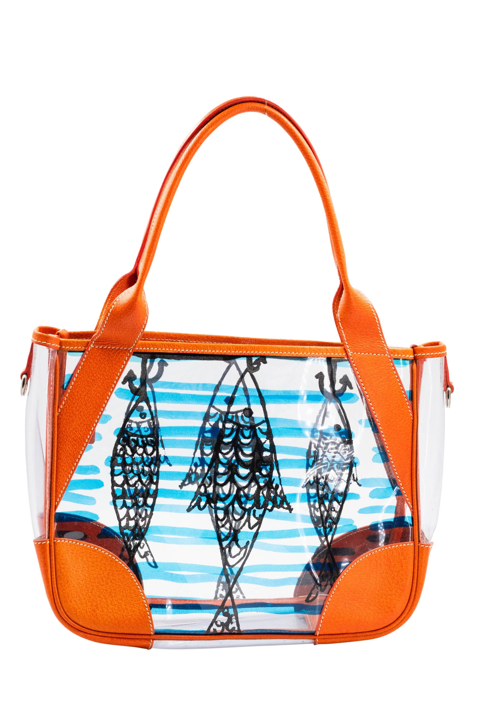 Prada Blue and Orange Cinghiale Fish Tote Purse Size M