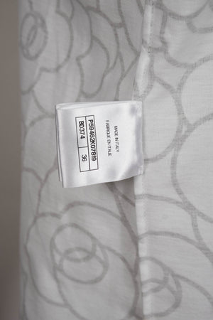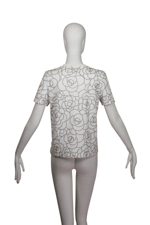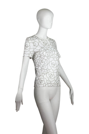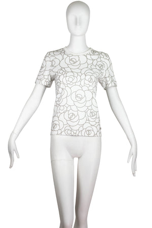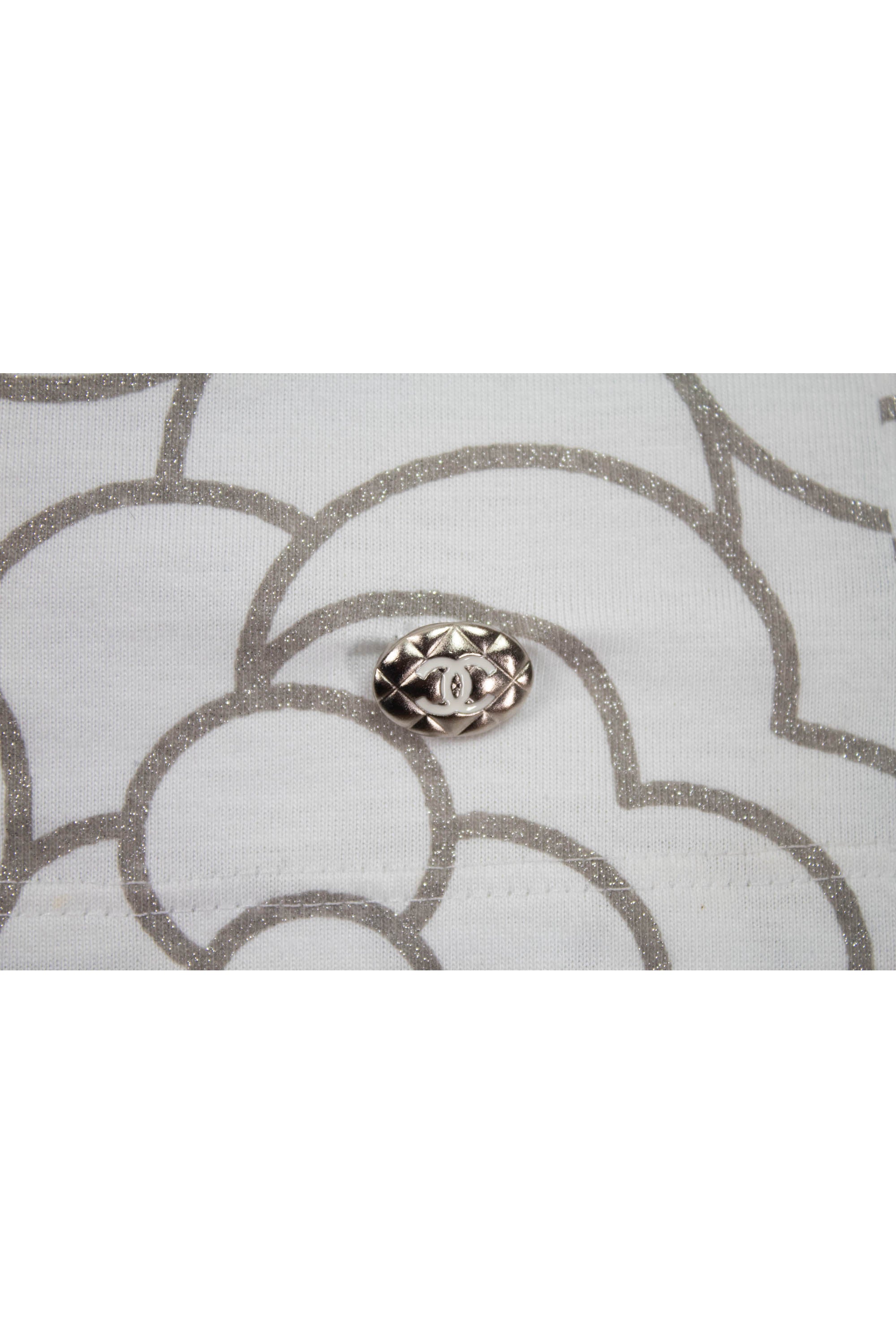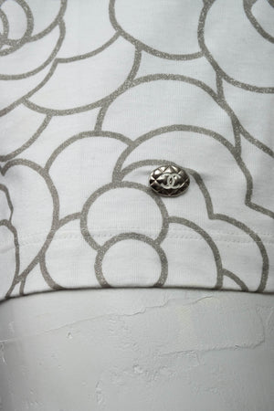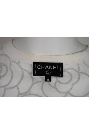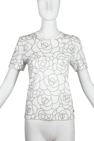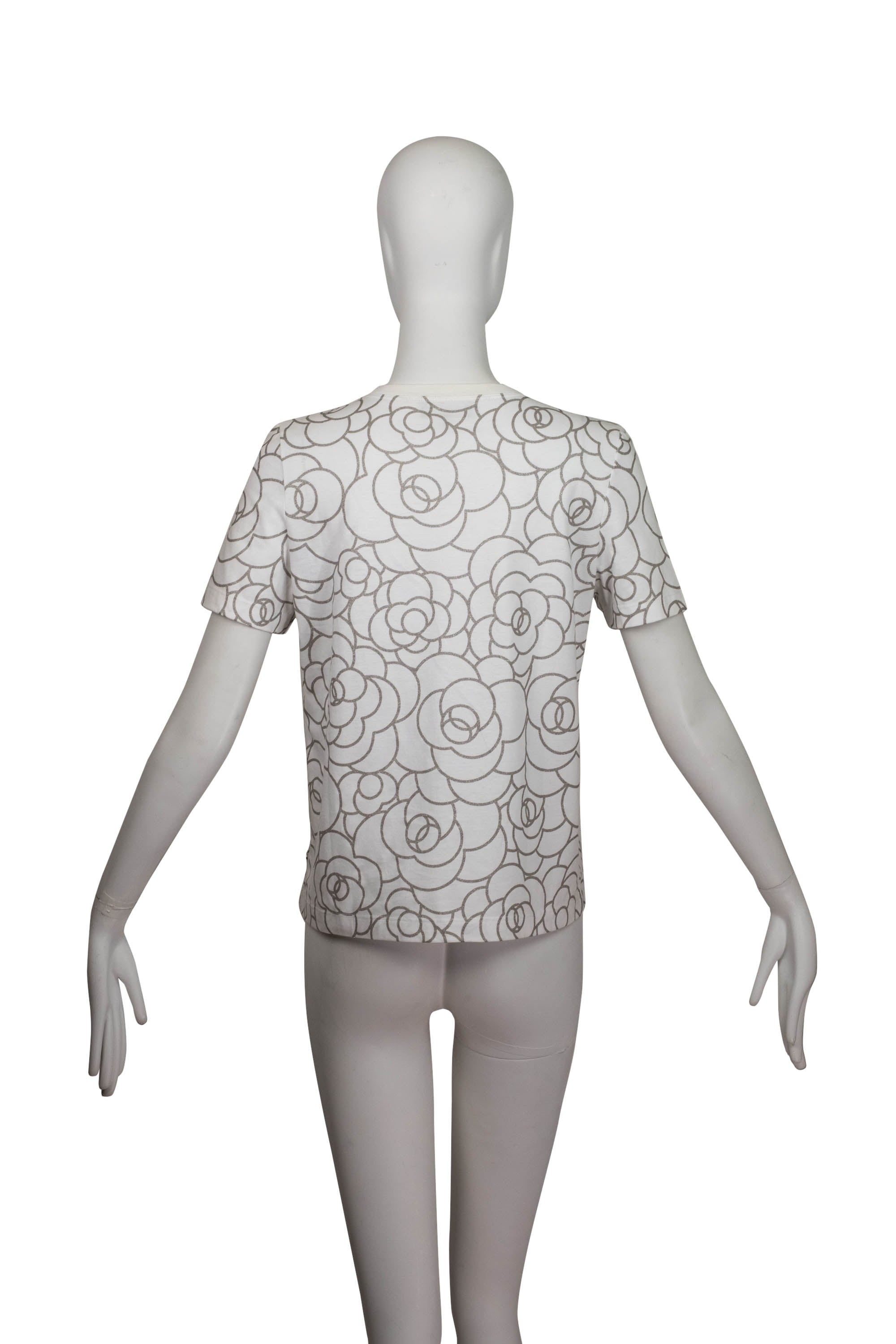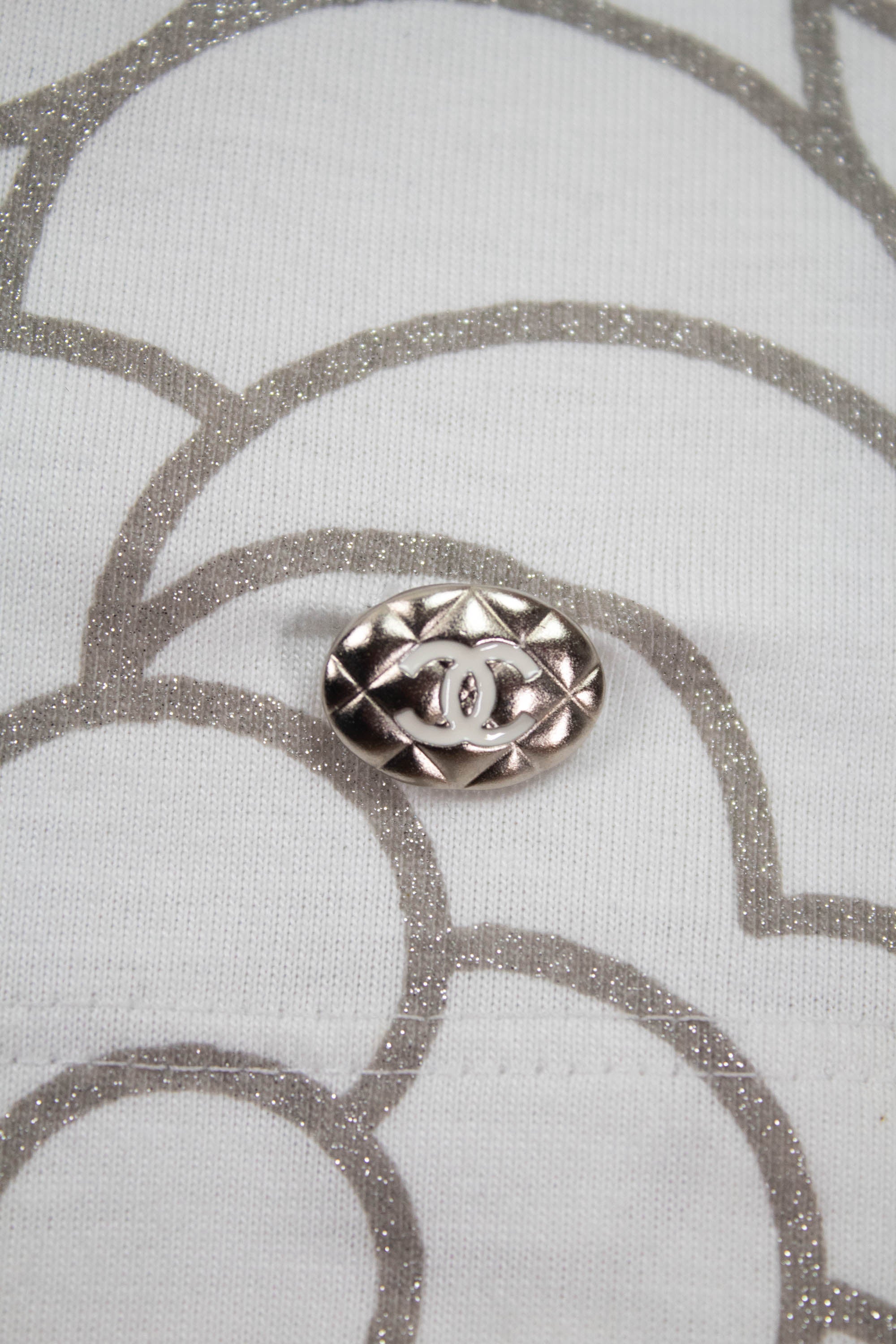 Chanel White Tee Shirt with Silver Glitter Camilla Print 2017 Size 36