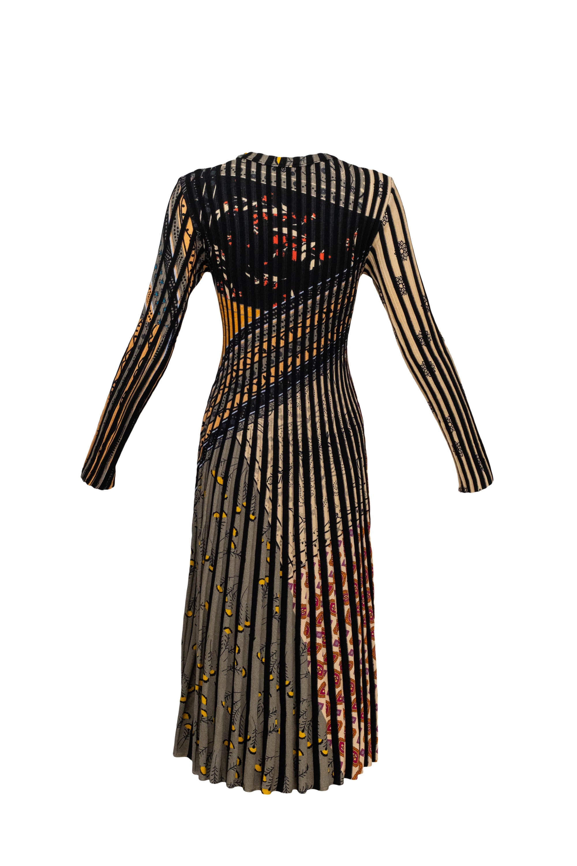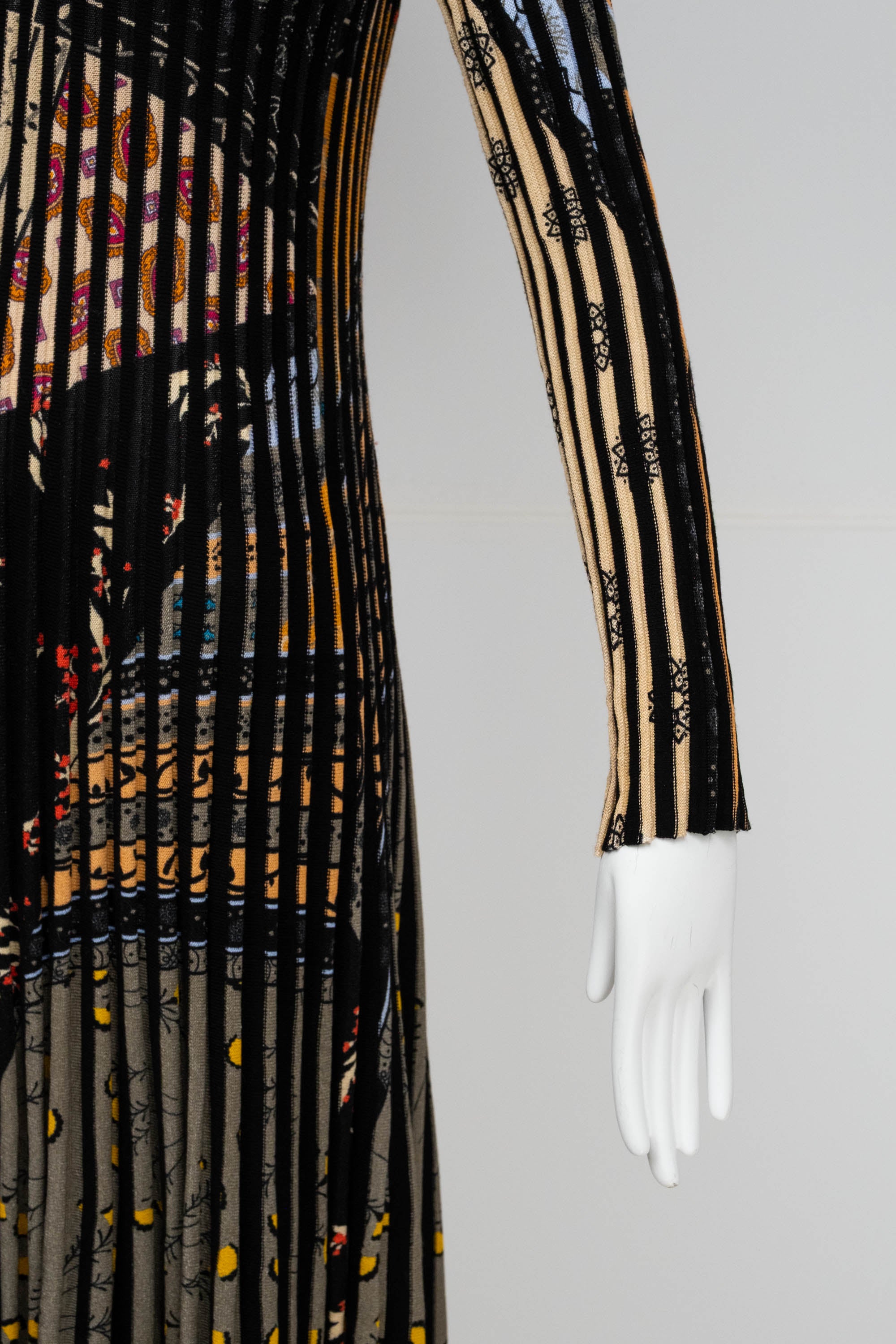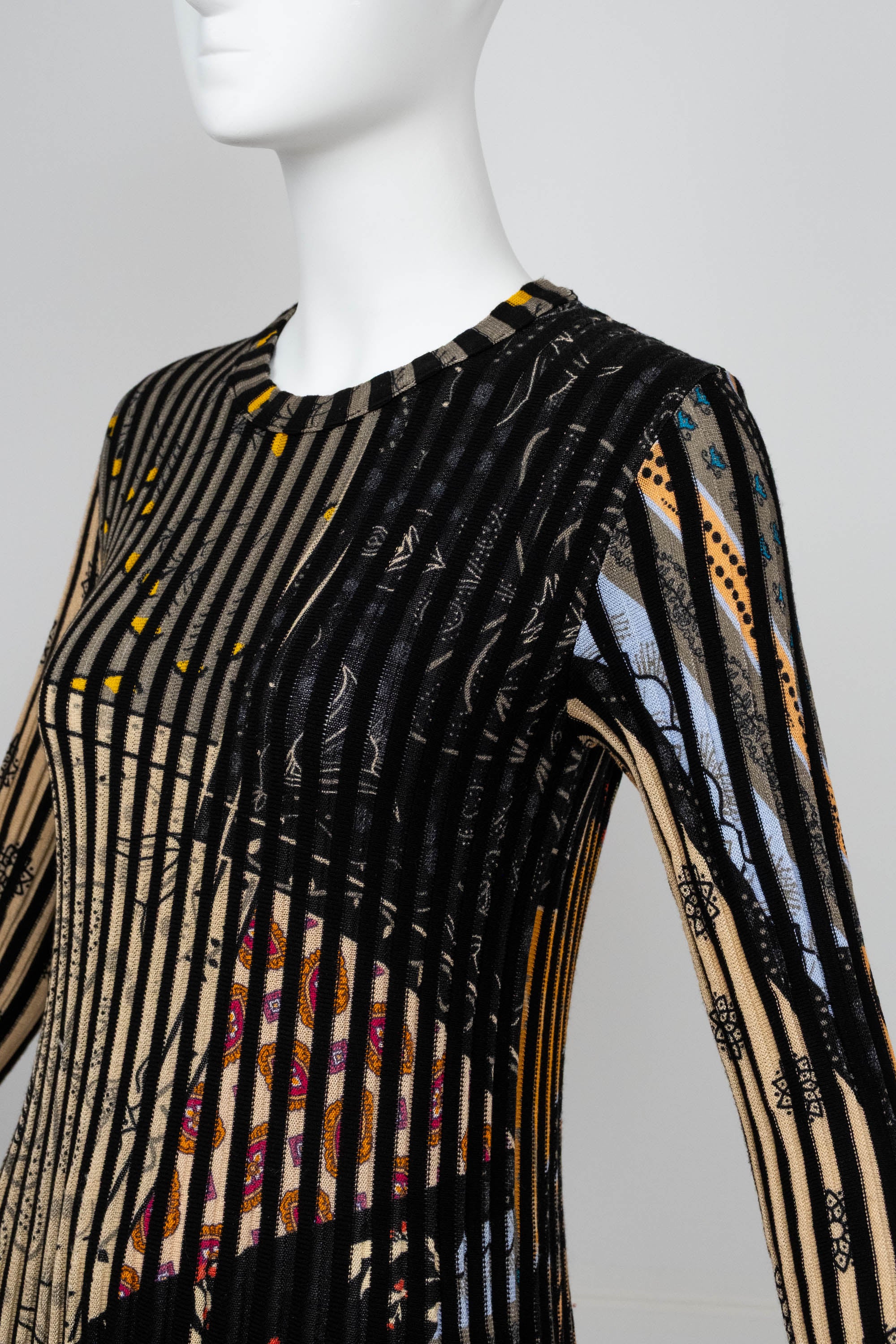 Etro Black Rib Knit Maxi Dress Paisley Print Size 42. Black rib knit with multi-pattern knit layer featuring signature paisley. Scoop neck collar and long sleeve with long skirt.