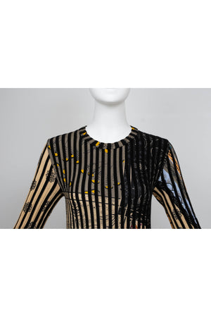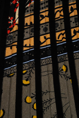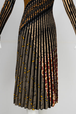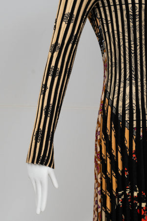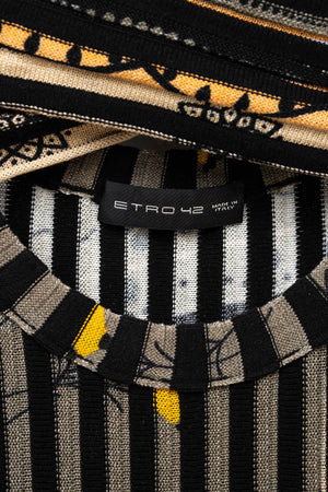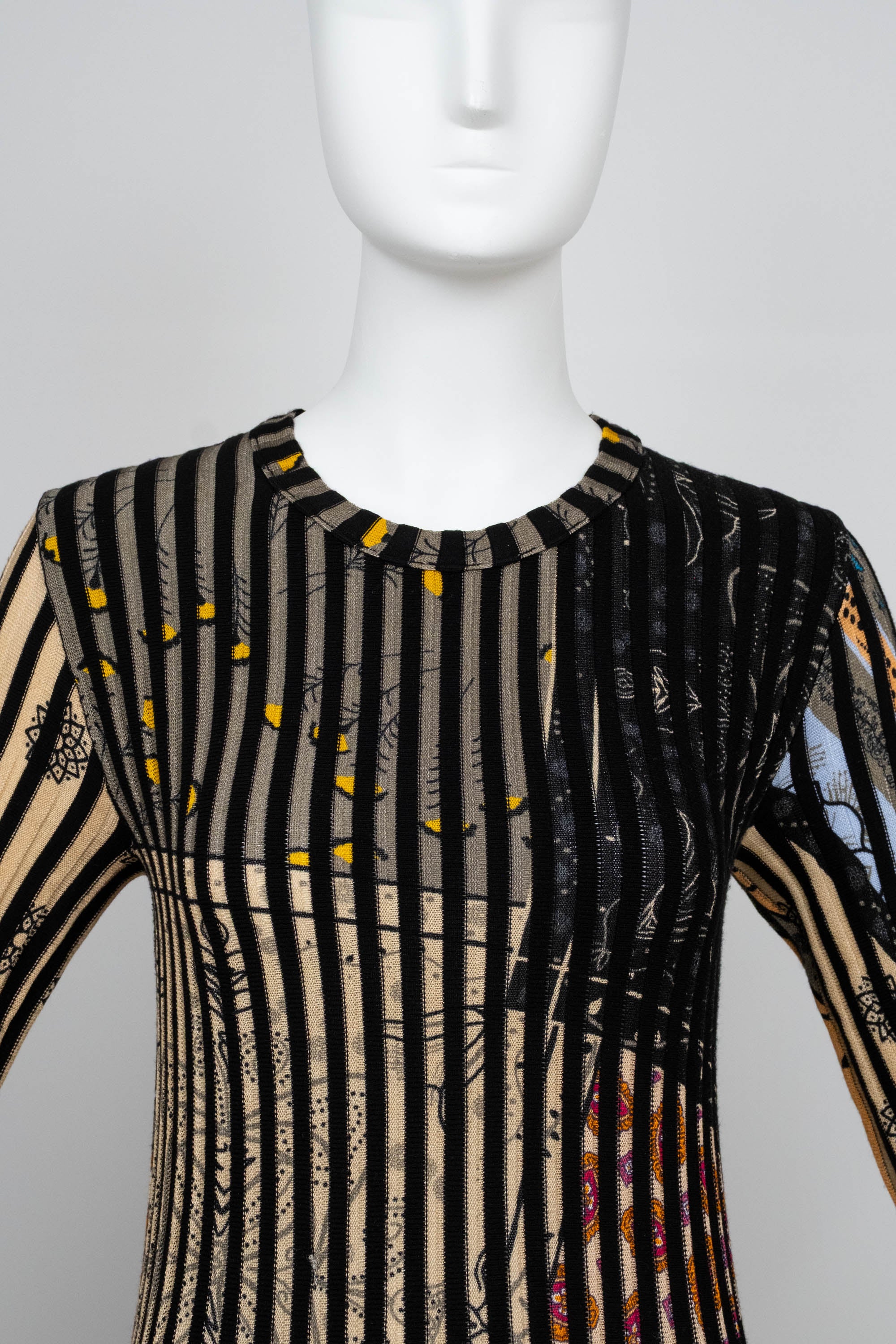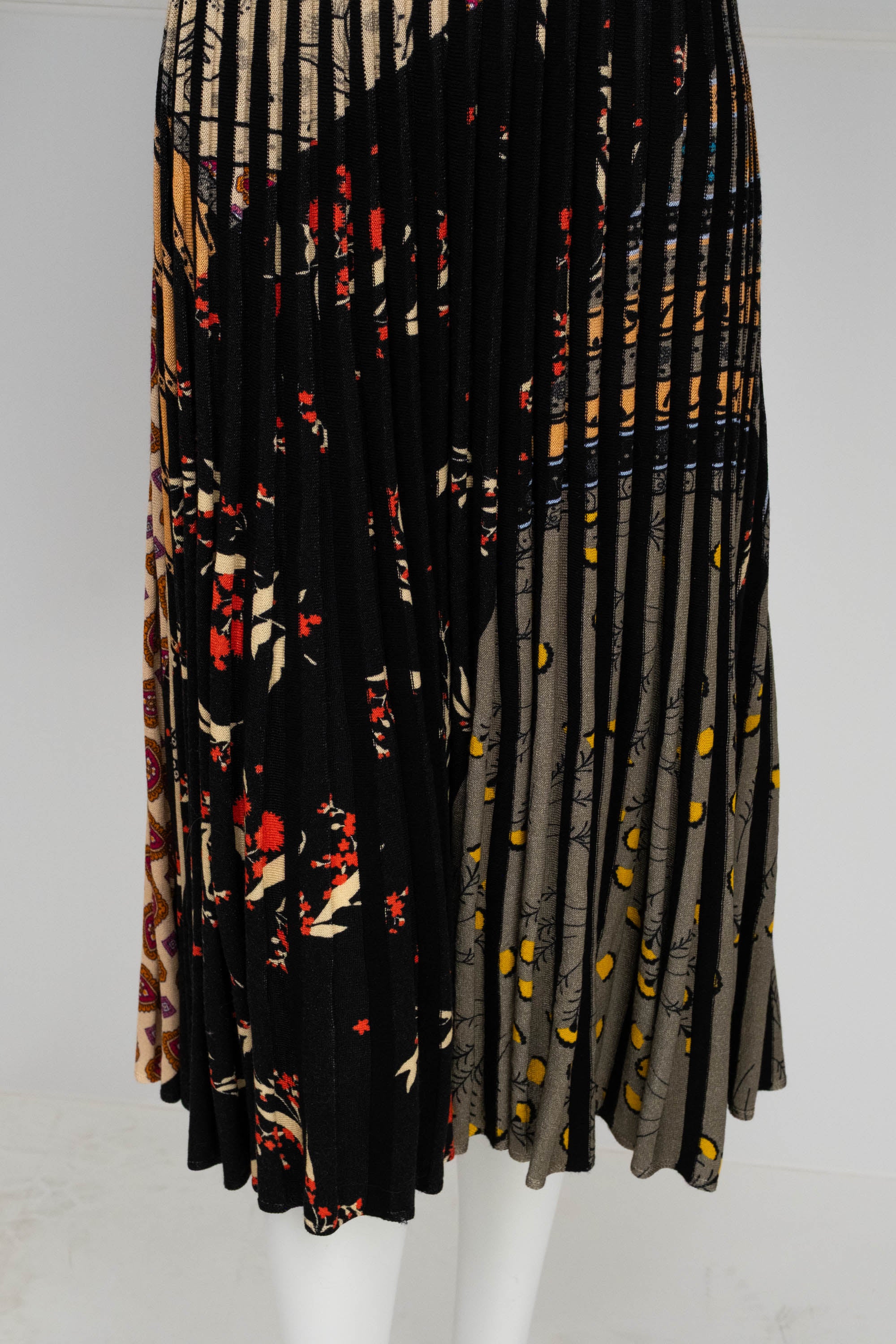 Etro Black Rib Knit Maxi Dress Paisley Print Size 42. Black rib knit with multi-pattern knit layer featuring signature paisley. Scoop neck collar and long sleeve with long skirt.