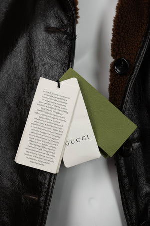 Gucci Plaid Men's Brown Leather Bomber Jacket Reversable Size 46 New with tags. Brown leather exterior. Shearling lining with plaid lined sleeves. Buttons featuring Gucci branding. Jacket is reversable. Nwt.