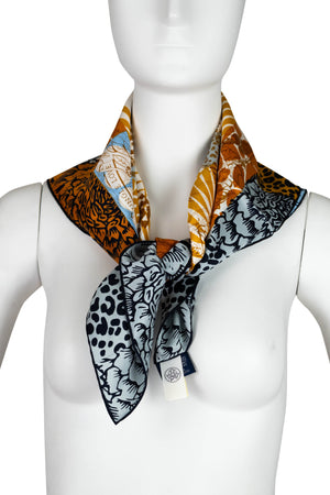 Hermes Brown and Orange Jardins Hiver Faivre Silk Scarf 90cm.
