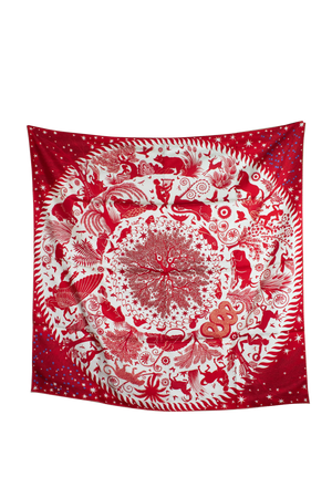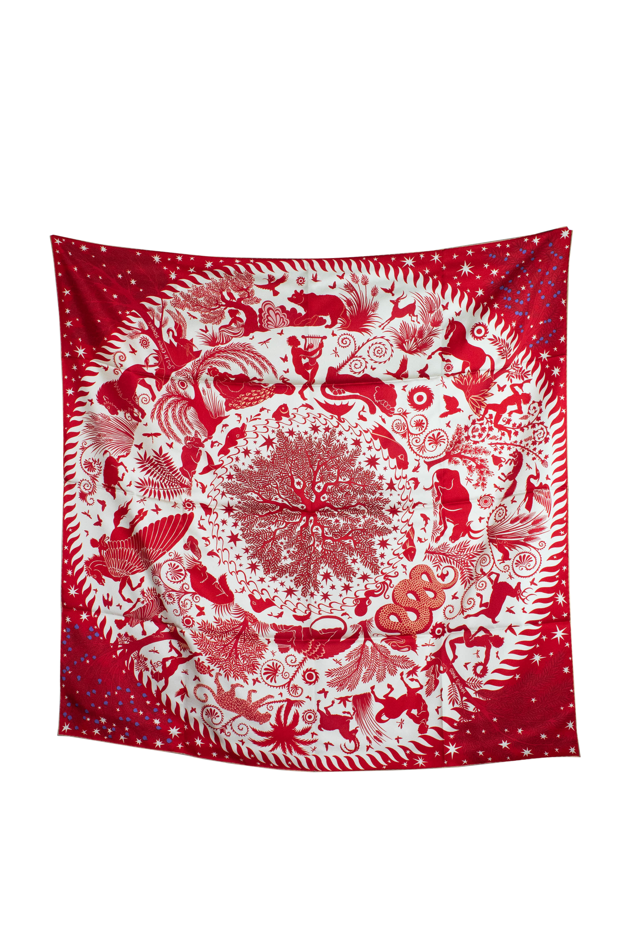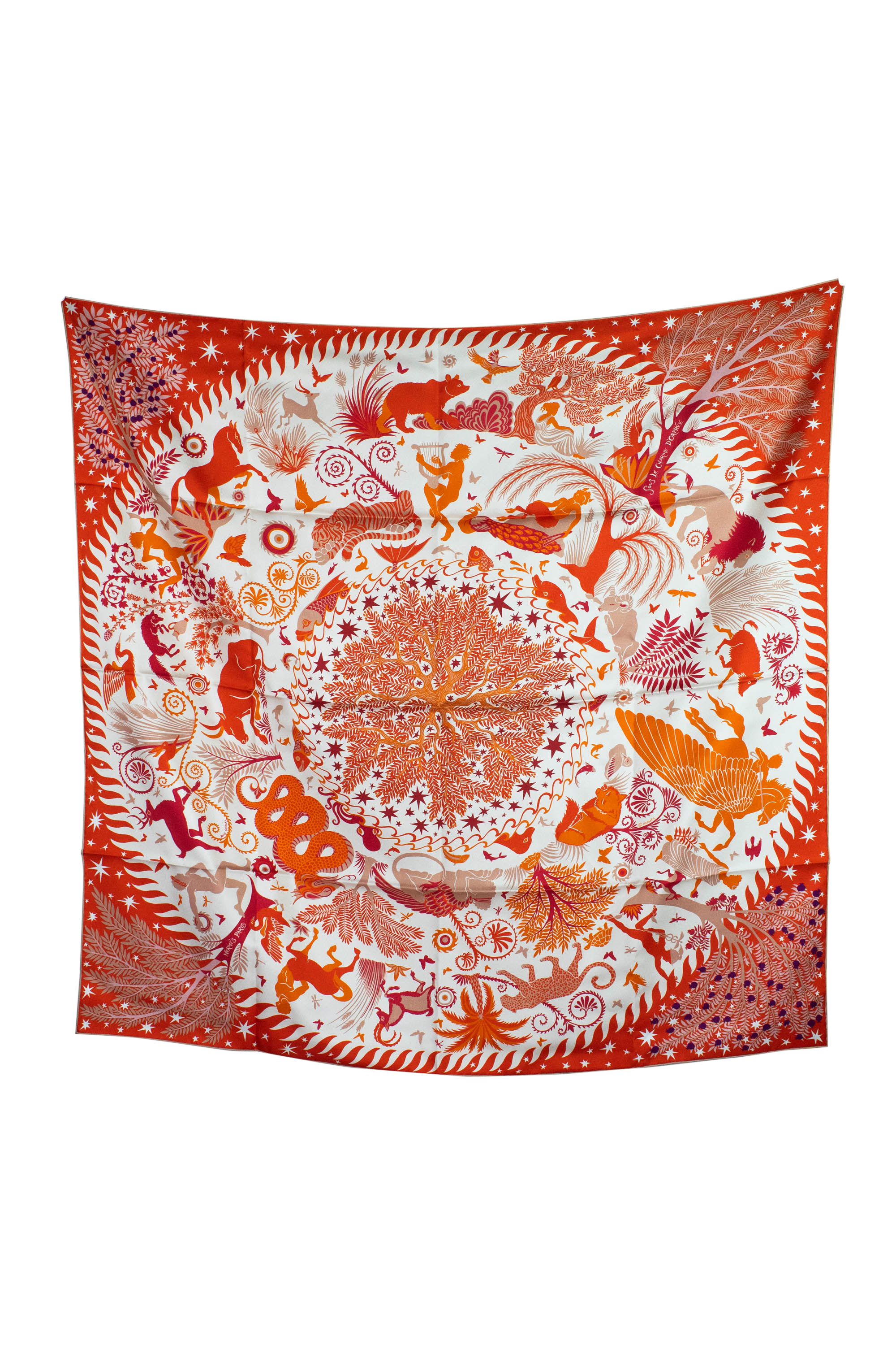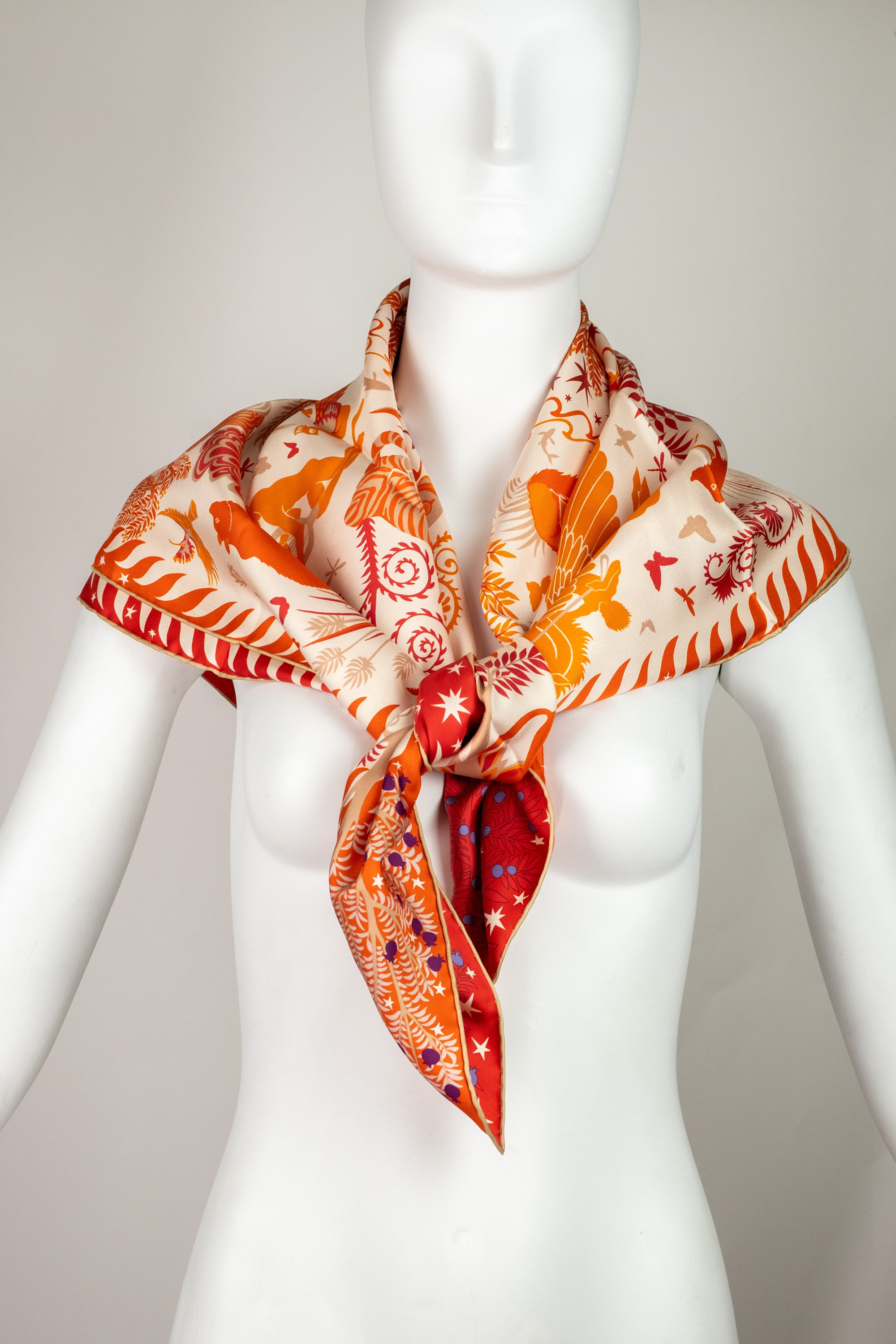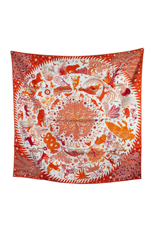 Hermes Orange and Red Le Charme Double Sided Print Silk Scarf 90cm