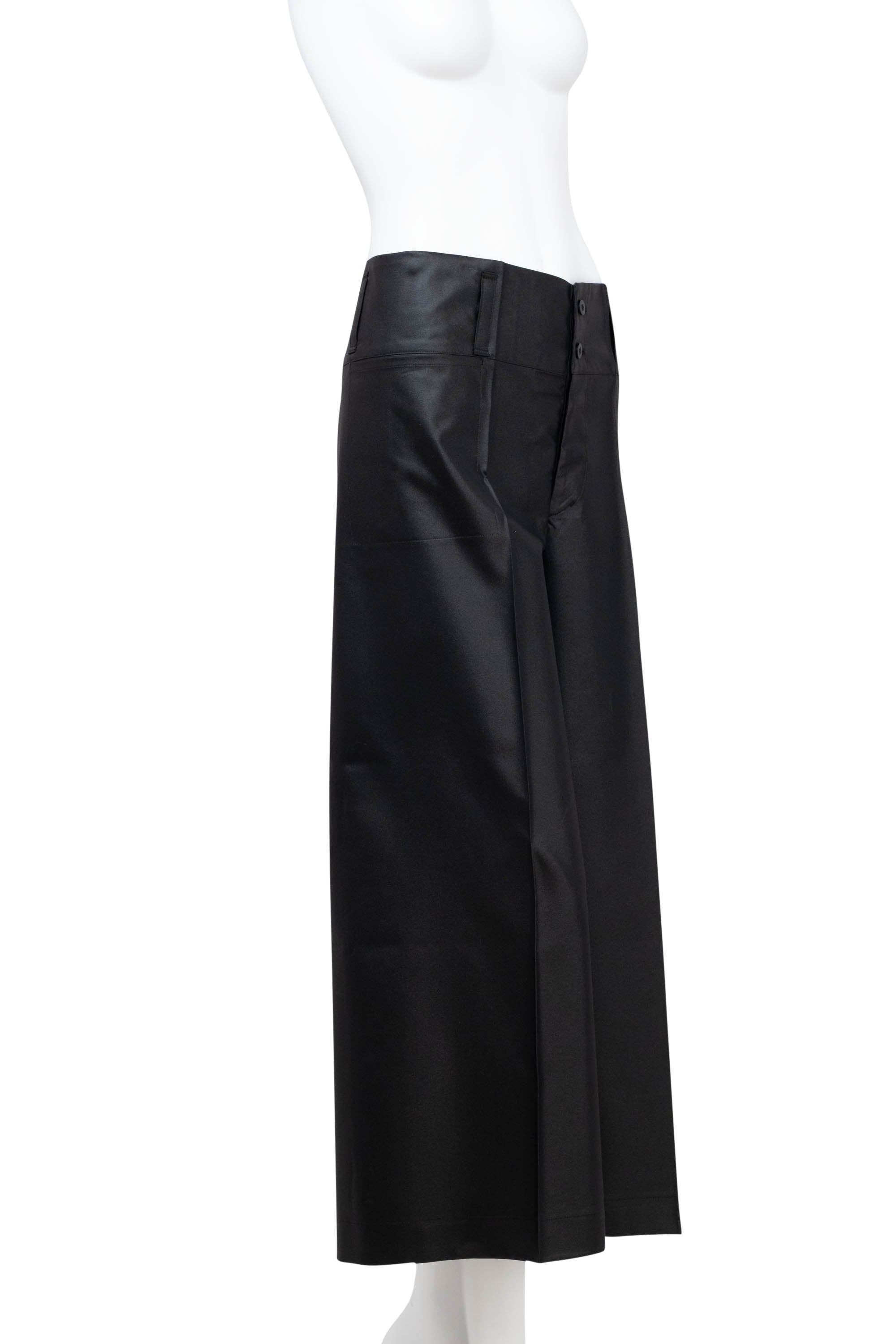 Issey Miyake Black Paper Bag Waist Pants Size 3. Straight leg pants in black with pleat down the front of the legs. Dual button and zipper closure. Large belt loops for expanded belt possibilities.
