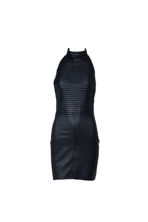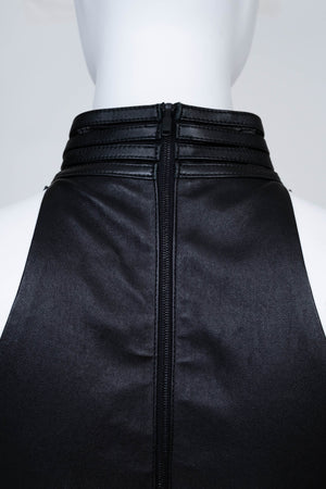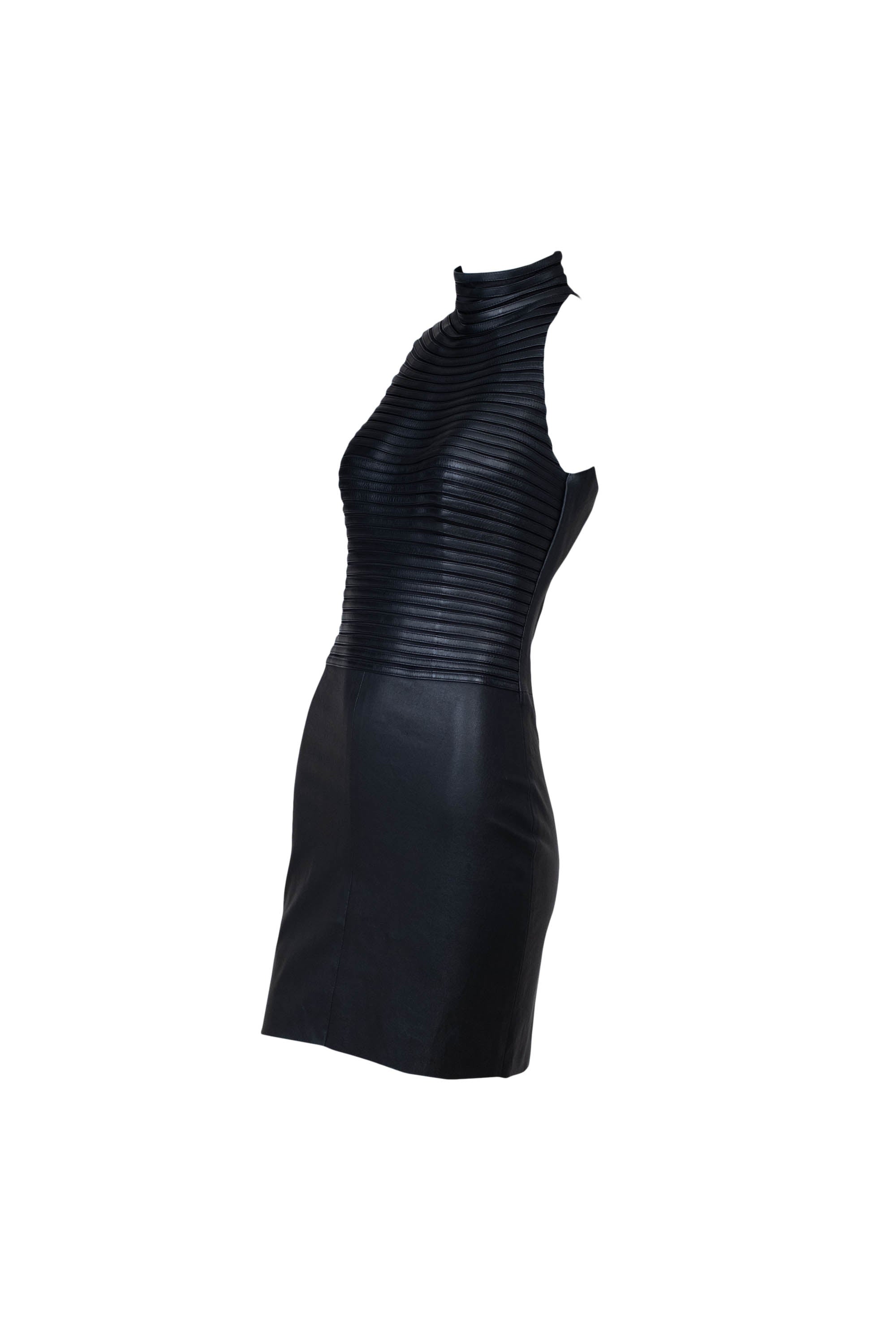 Jitrois Black French Mock Neck Stretch Leather Dress Size S.