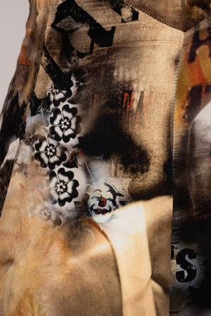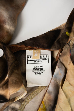 John Galliano Brown Beige I'm A King Boxer Print Silk Dress Y2k Size 40