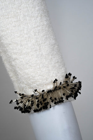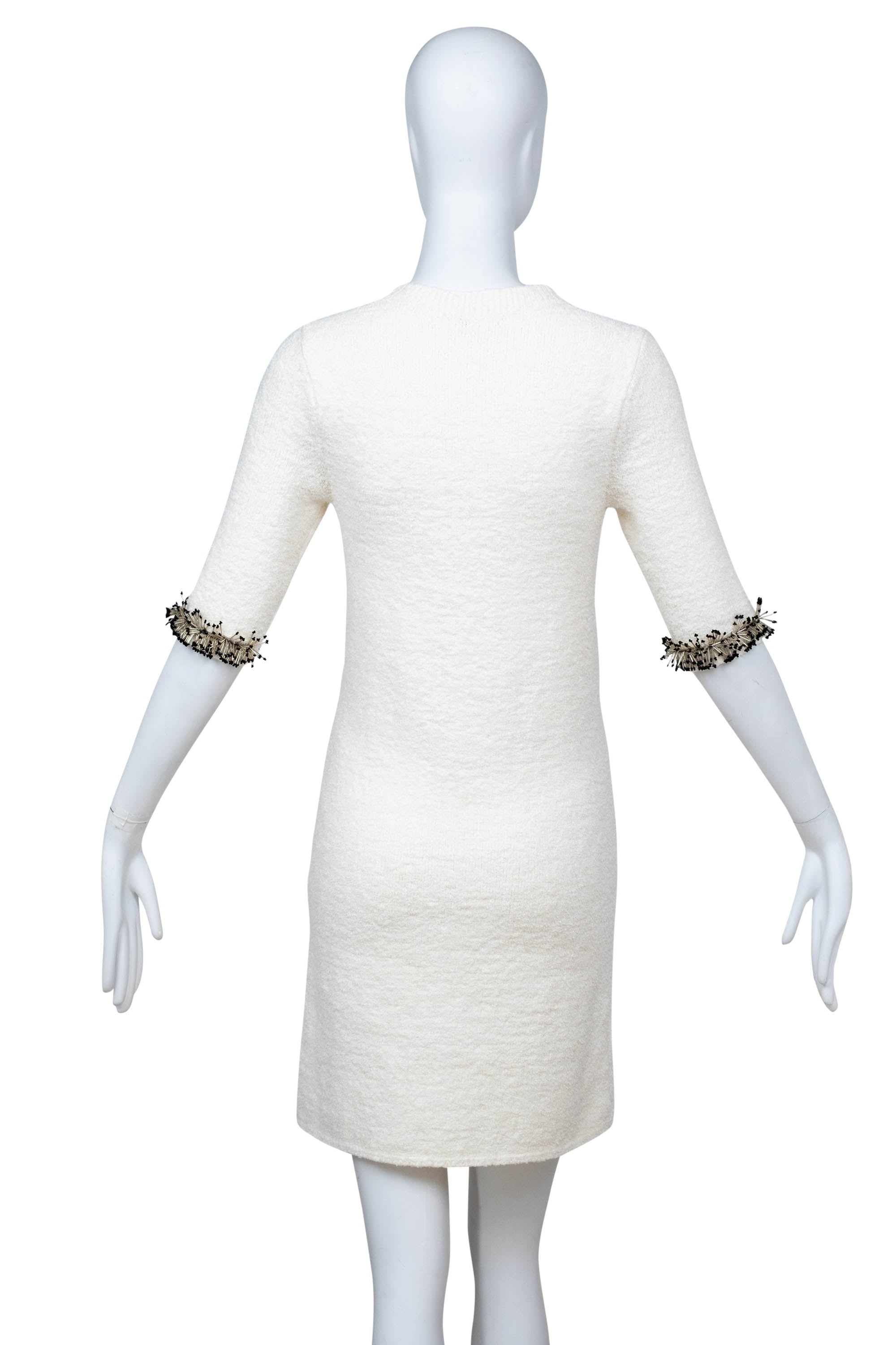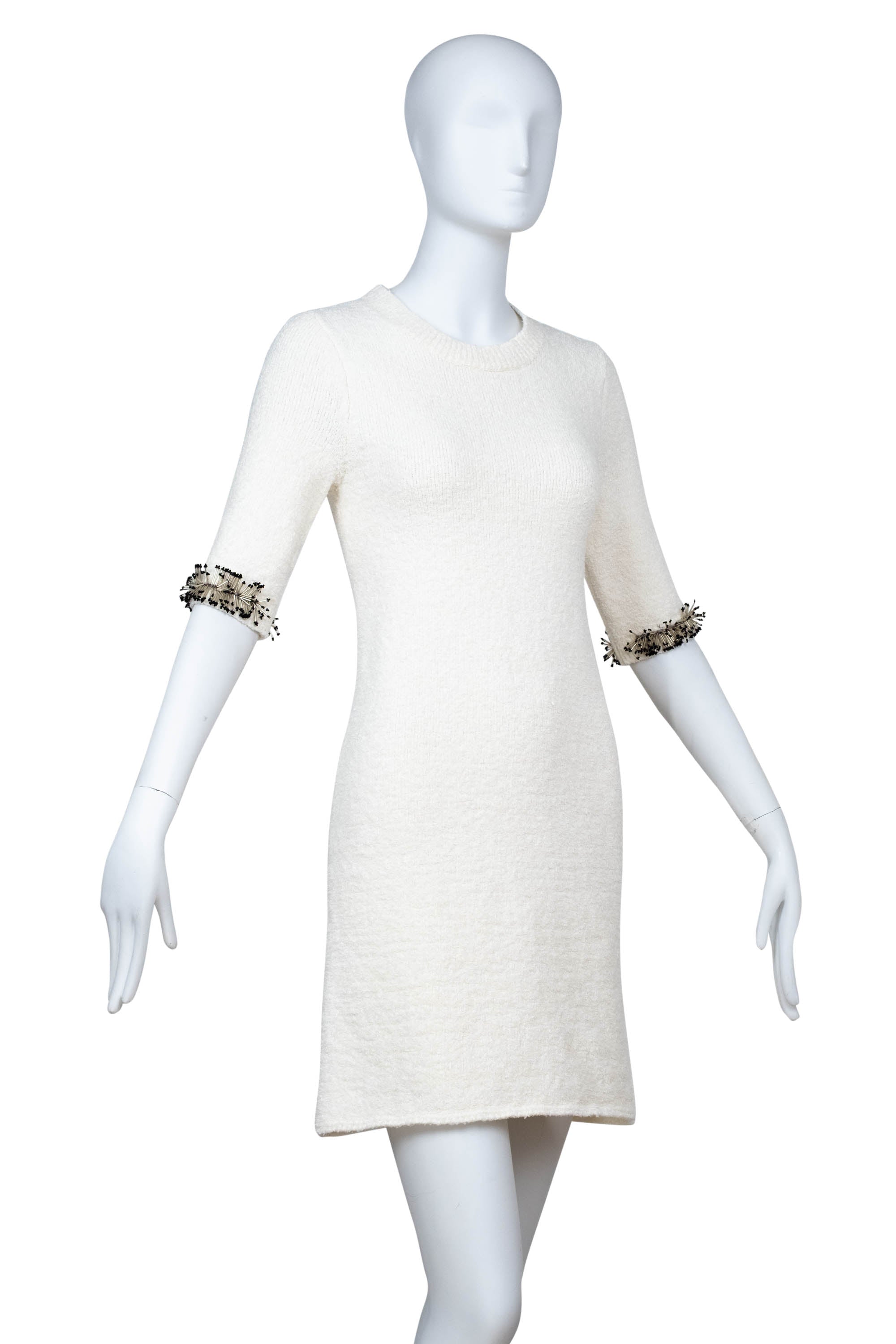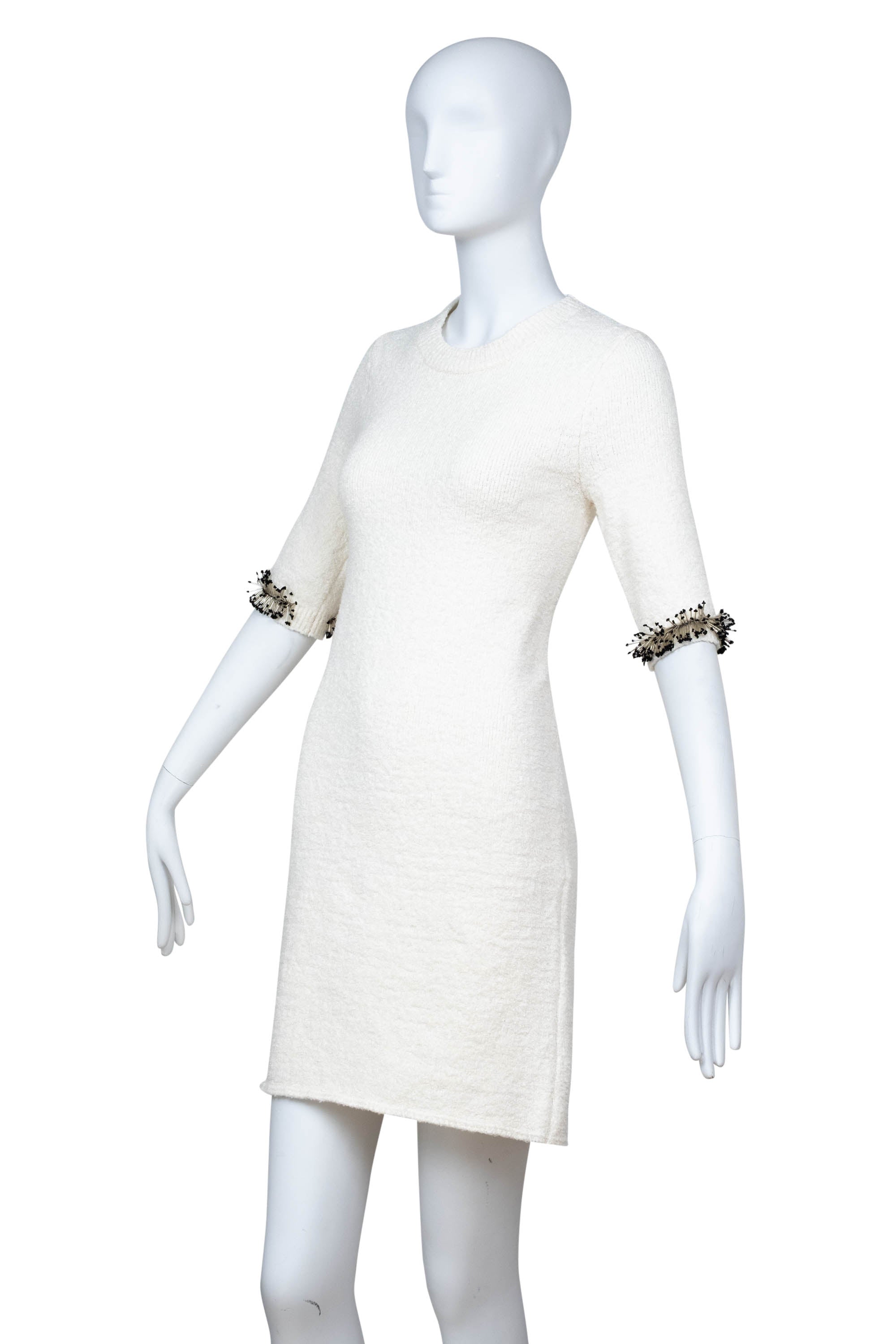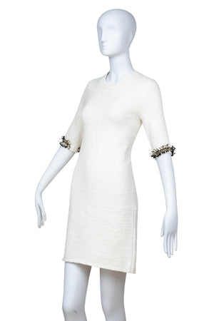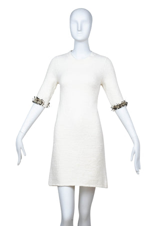 Lanvin White Knit Short Sleeve Bead Embellished Mini Dress Size Small.