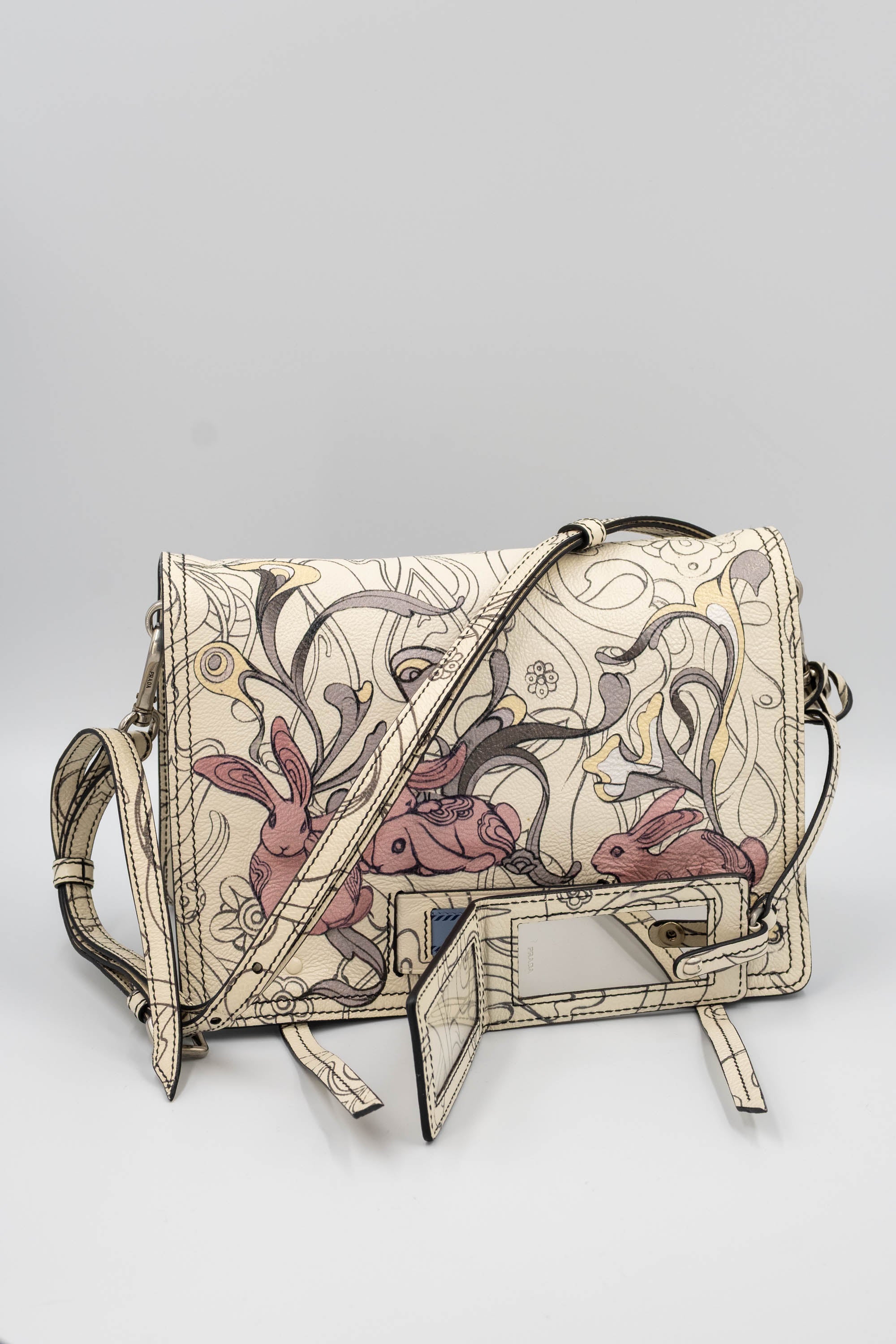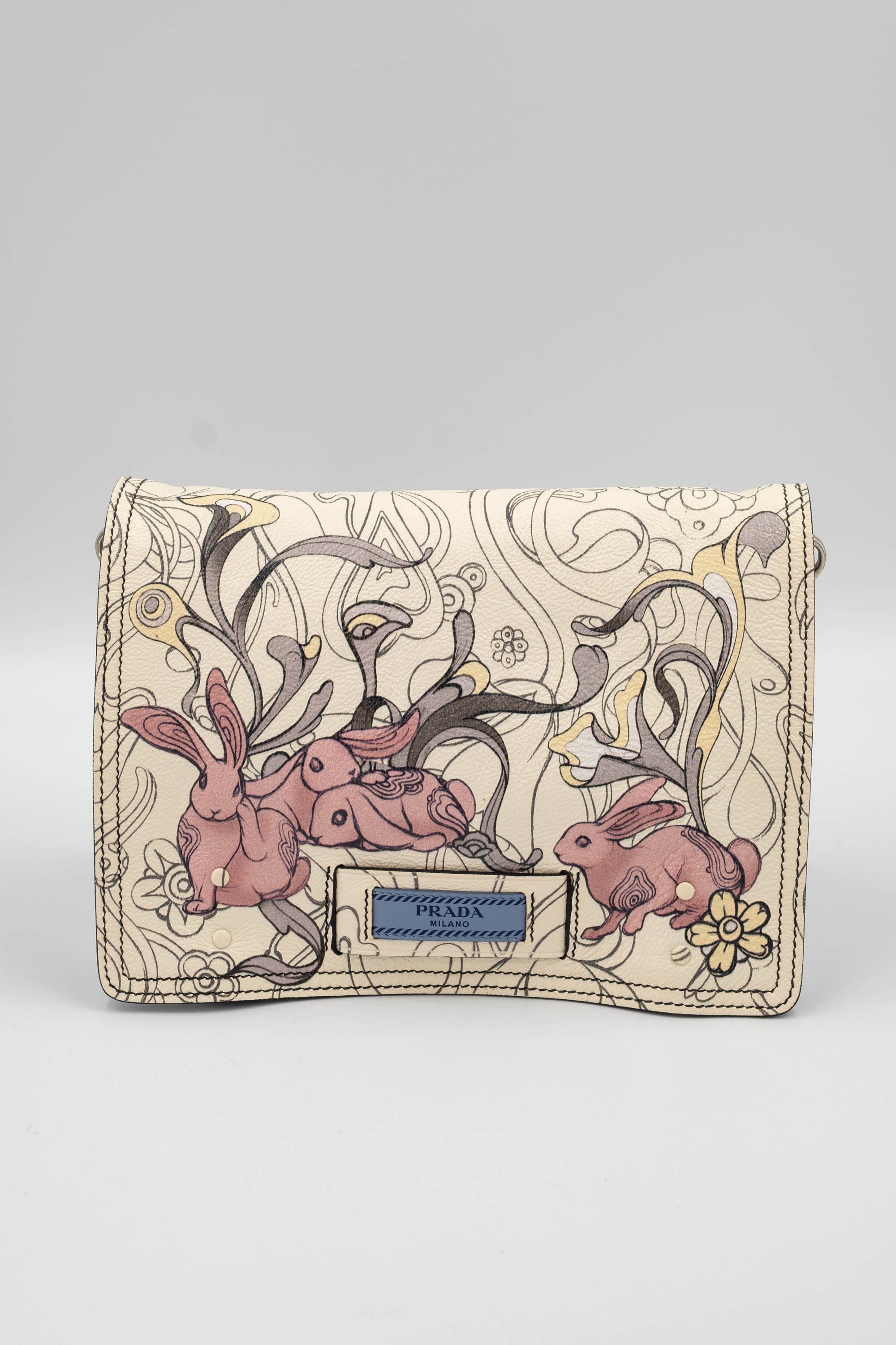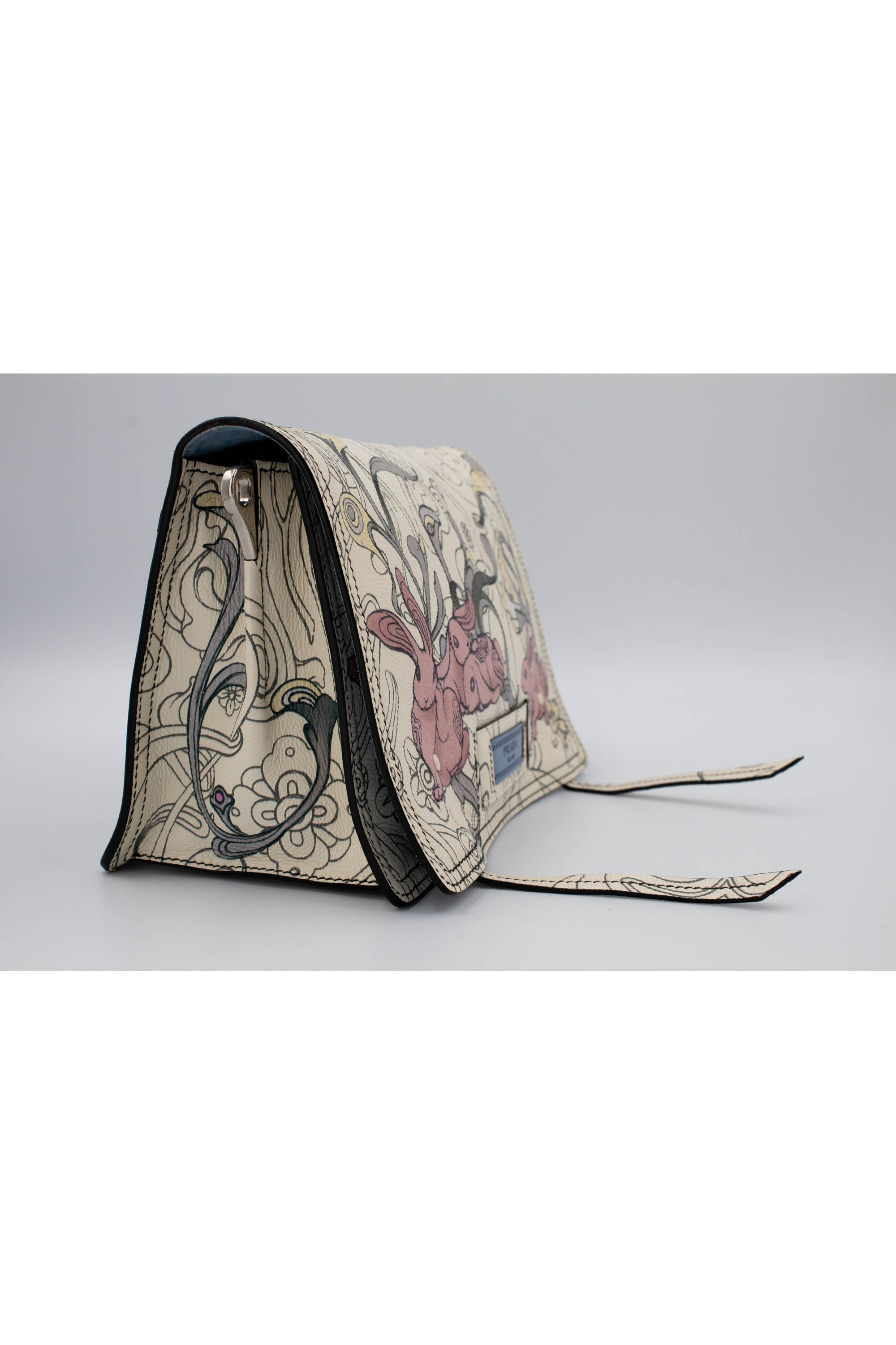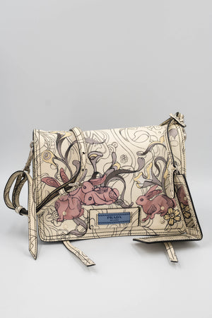 Prada x James Jean Etiquette Bunny Print Cream Purse 2018 Size M