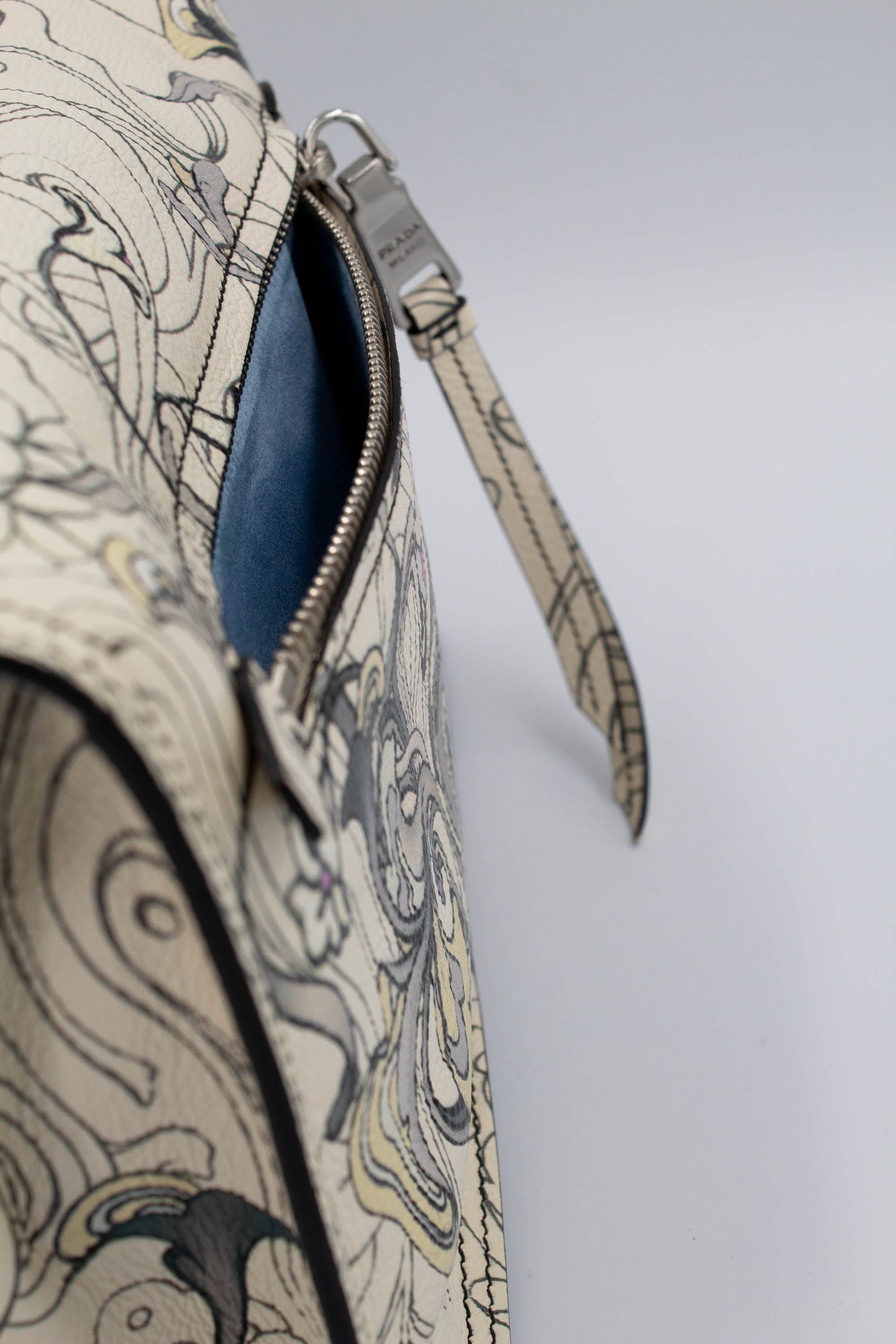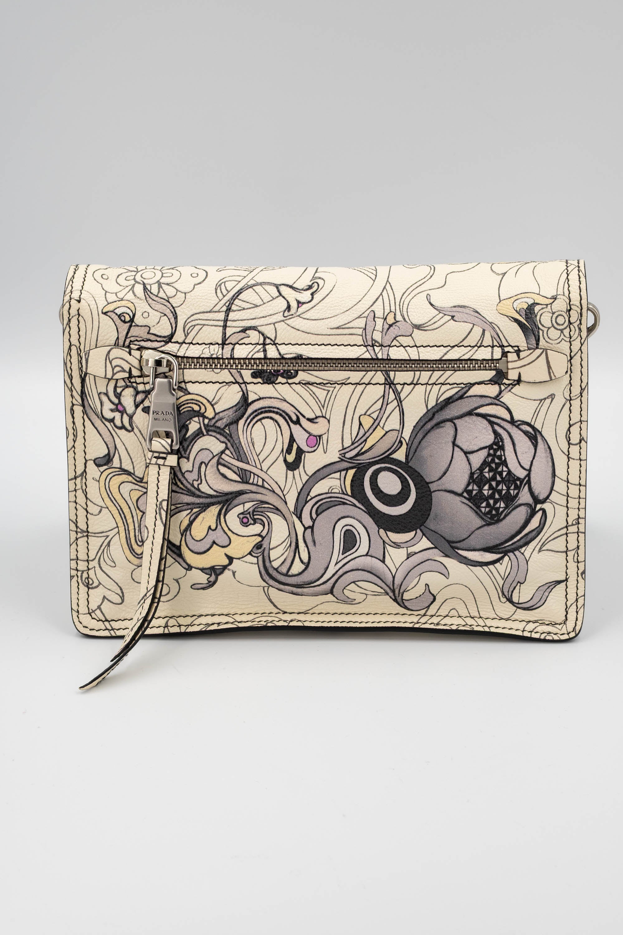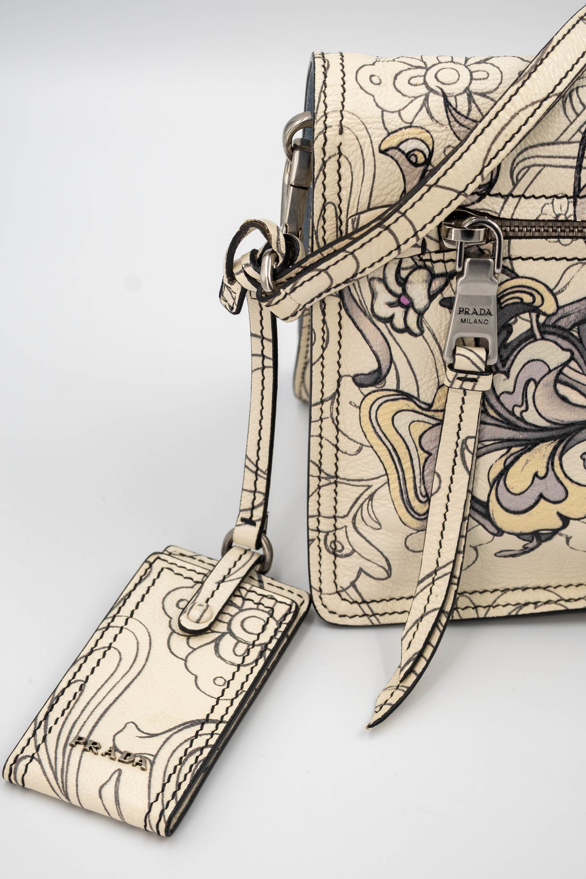 Prada x James Jean Etiquette Bunny Print Cream Purse 2018 Size M