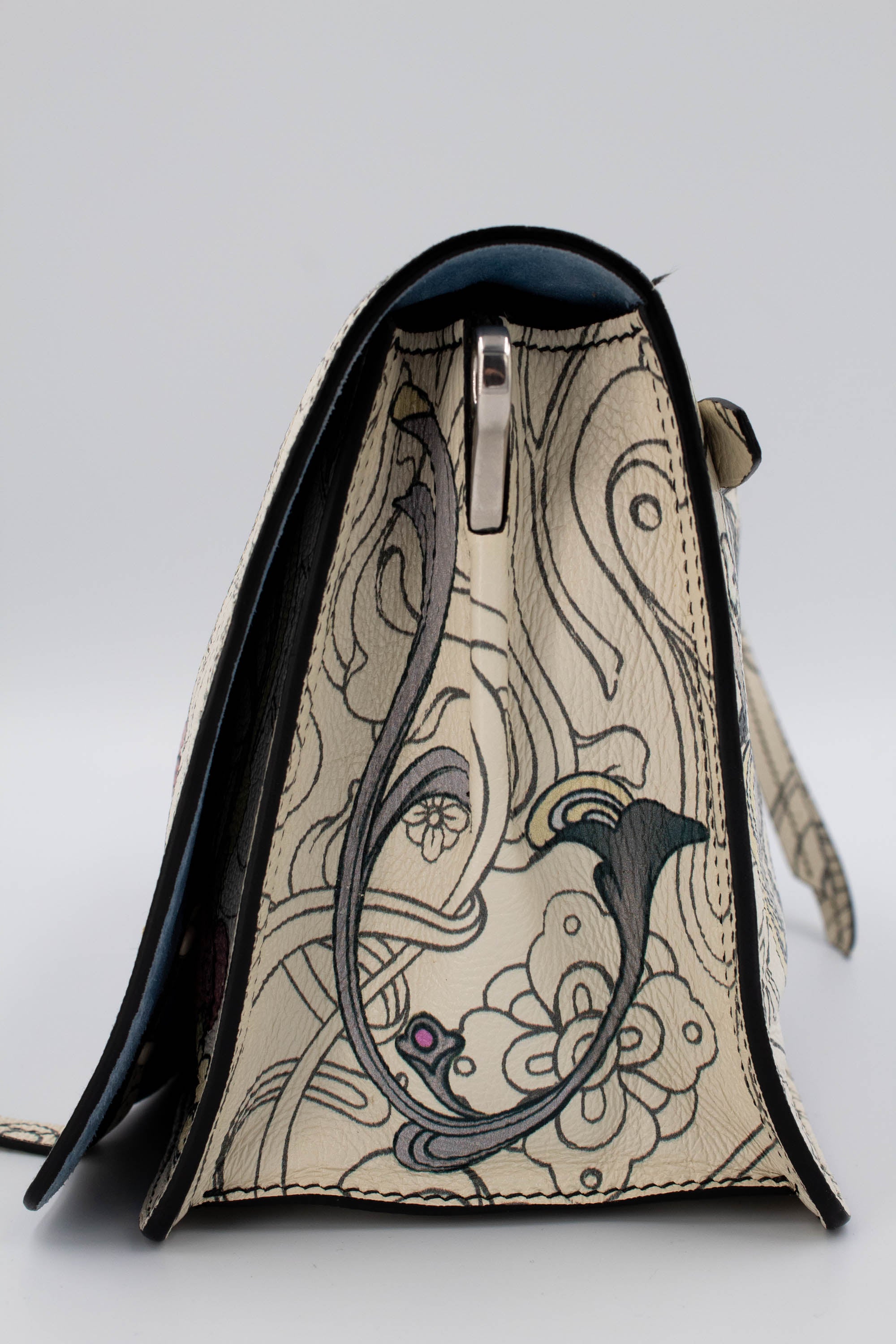 Leather and suede with printed details.