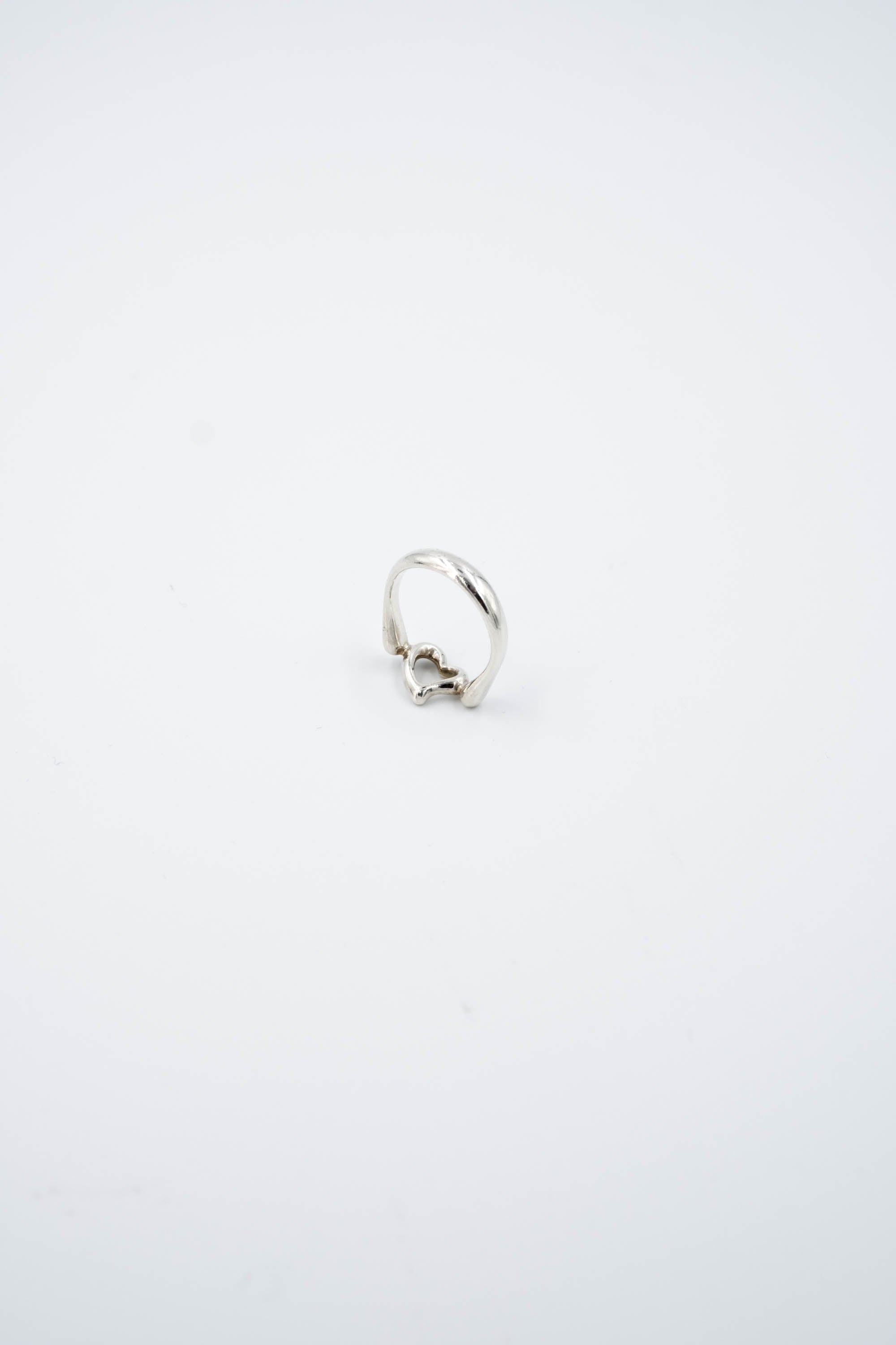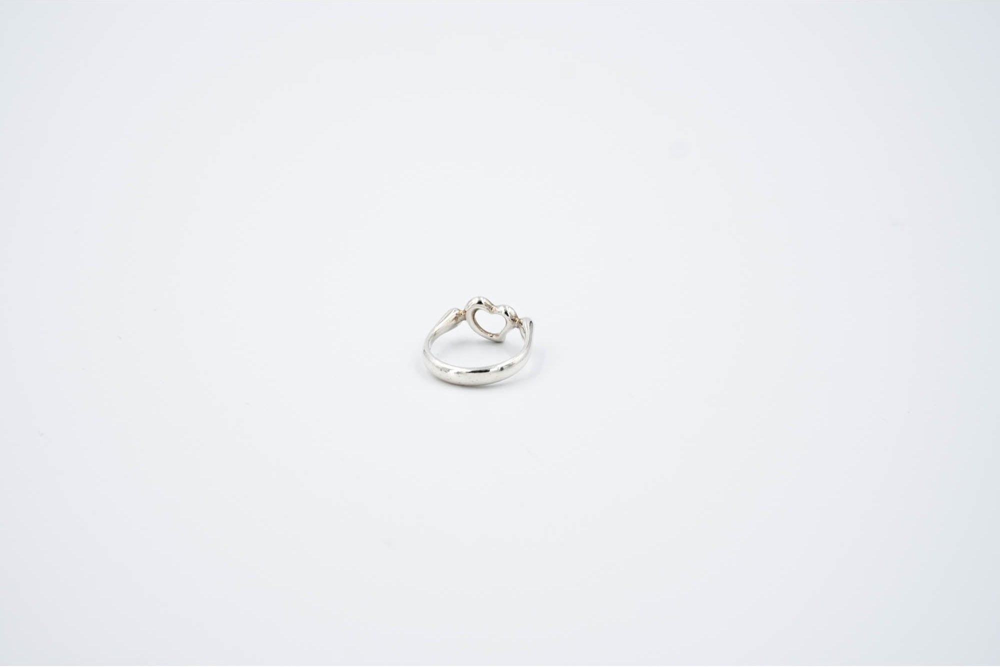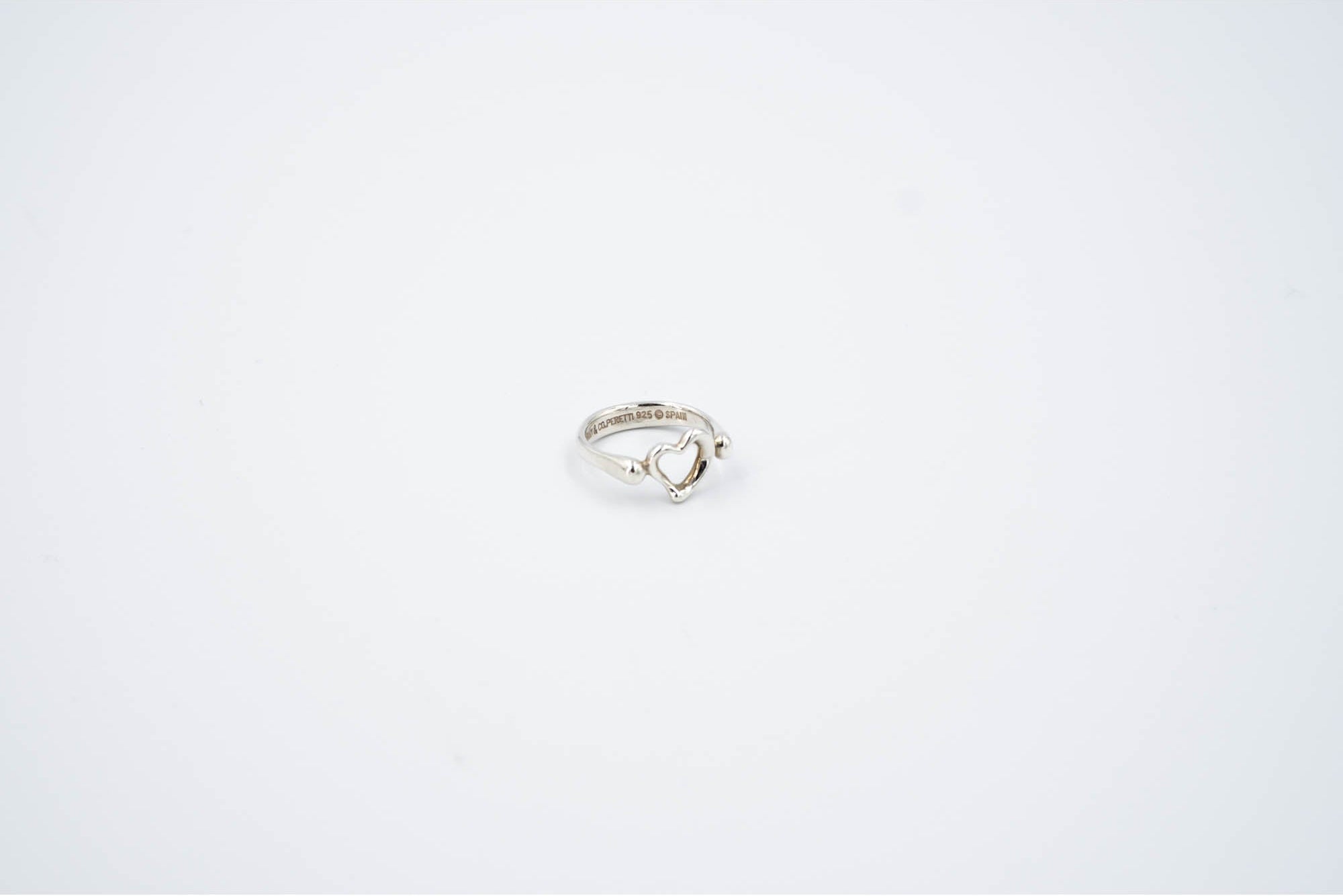 Tiffany & Co. Elsa Peretti Sterling Silver Open Heart Ring Size 3. Sterling silver ring with Signature open heart motif. Original Elsa Peretti design. Stamped inside with tiffany branding and 925.