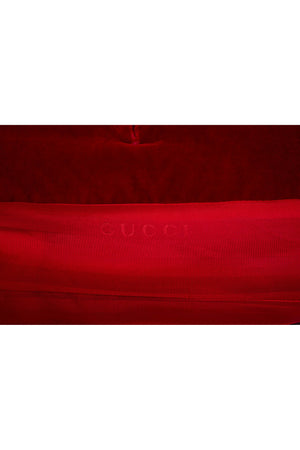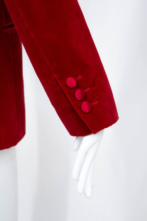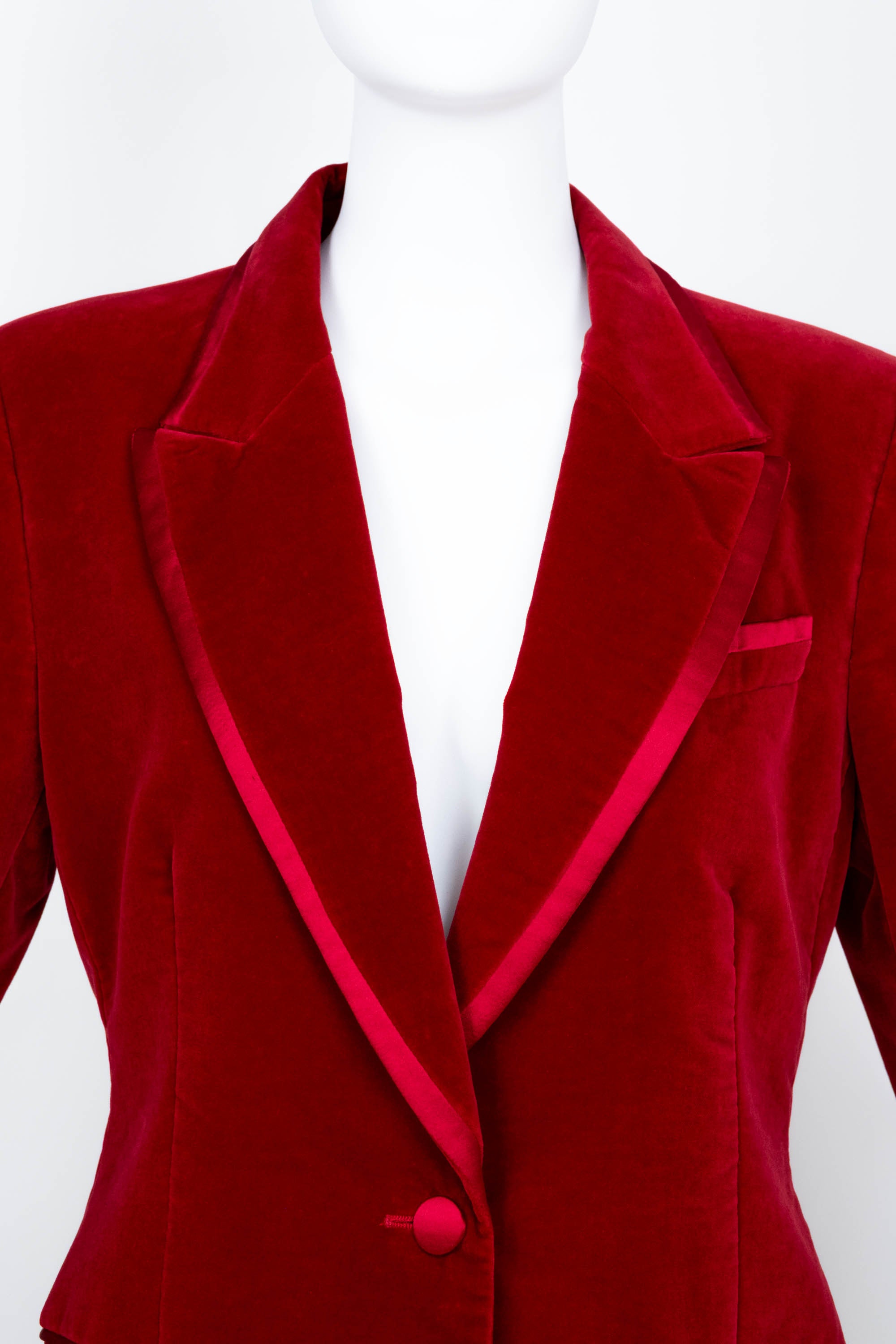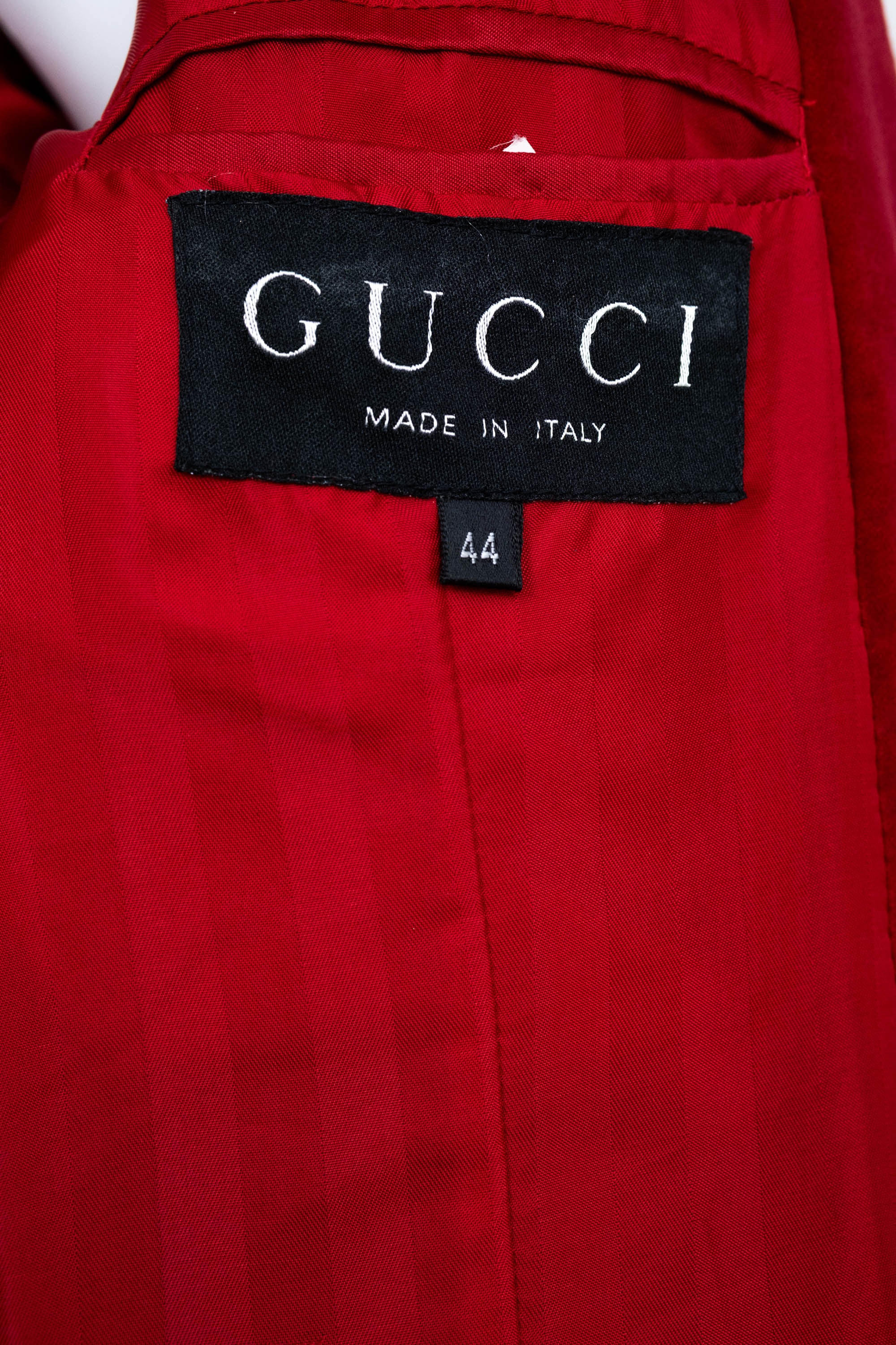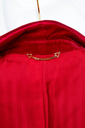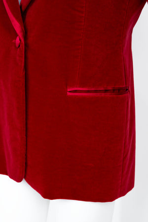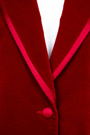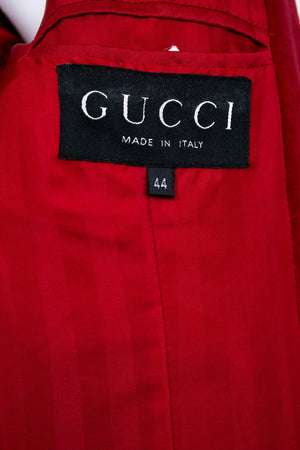 Tom Ford for Gucci Red Iconic Velvet Jacket FW 1996. Red velvet with satin trim. Single button closure. Famously seen on Gwyneth Paltrow at the MTV Awards. Also featured in the permanent collection at the Metropolitan Museum of Art.